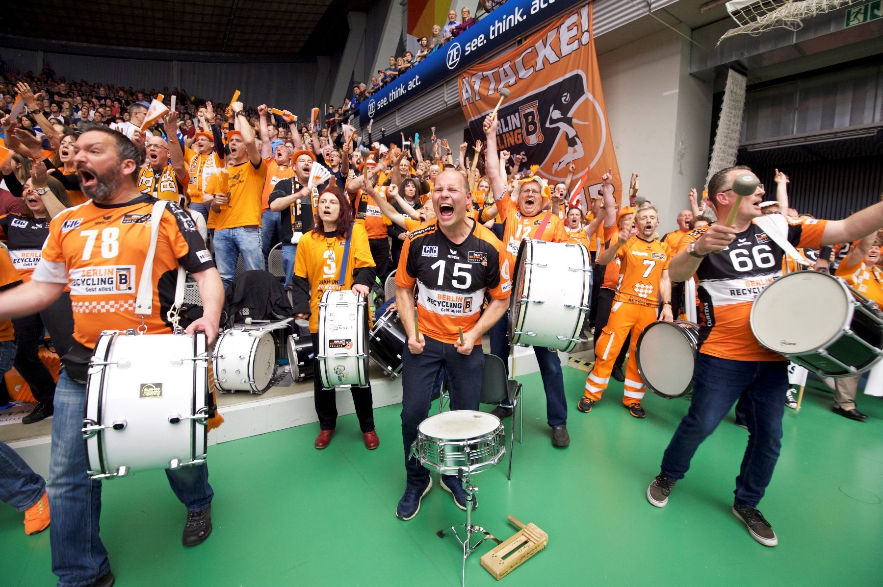 Wie eine Wand stehen unsere Fans hinter dem BR Volleys Team. Kein Weg ist ihnen zu weit, kein Aufwand zu groß. Sie geben aus dem Fanblock den Takt vor, wenn die Mannschaft im Volleyballtempel nach vorn gepeitscht wird.
