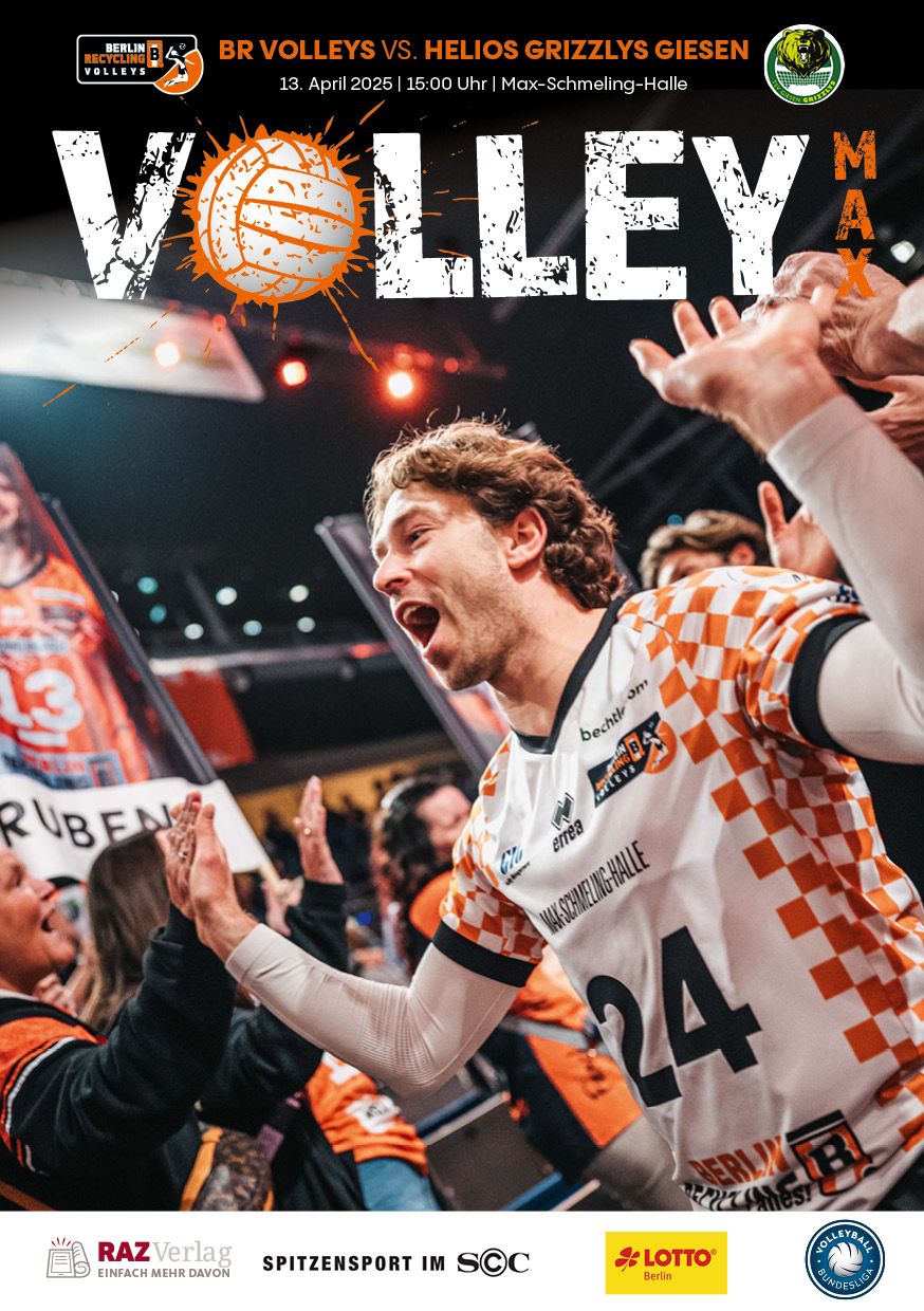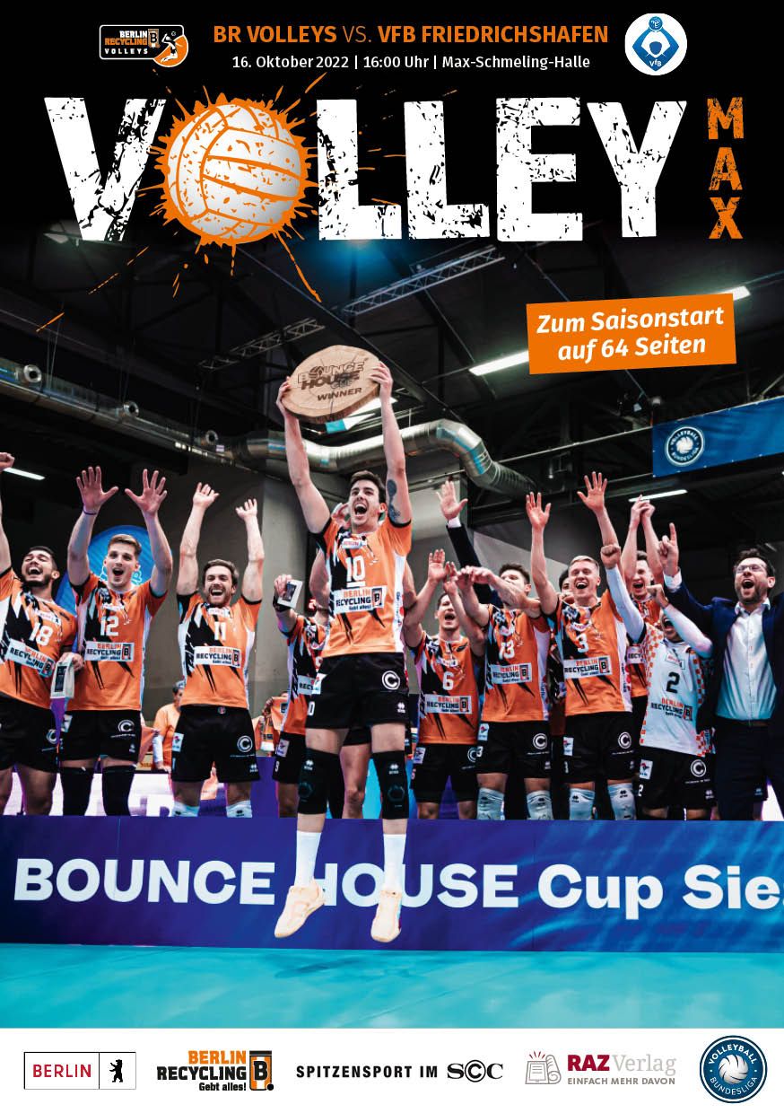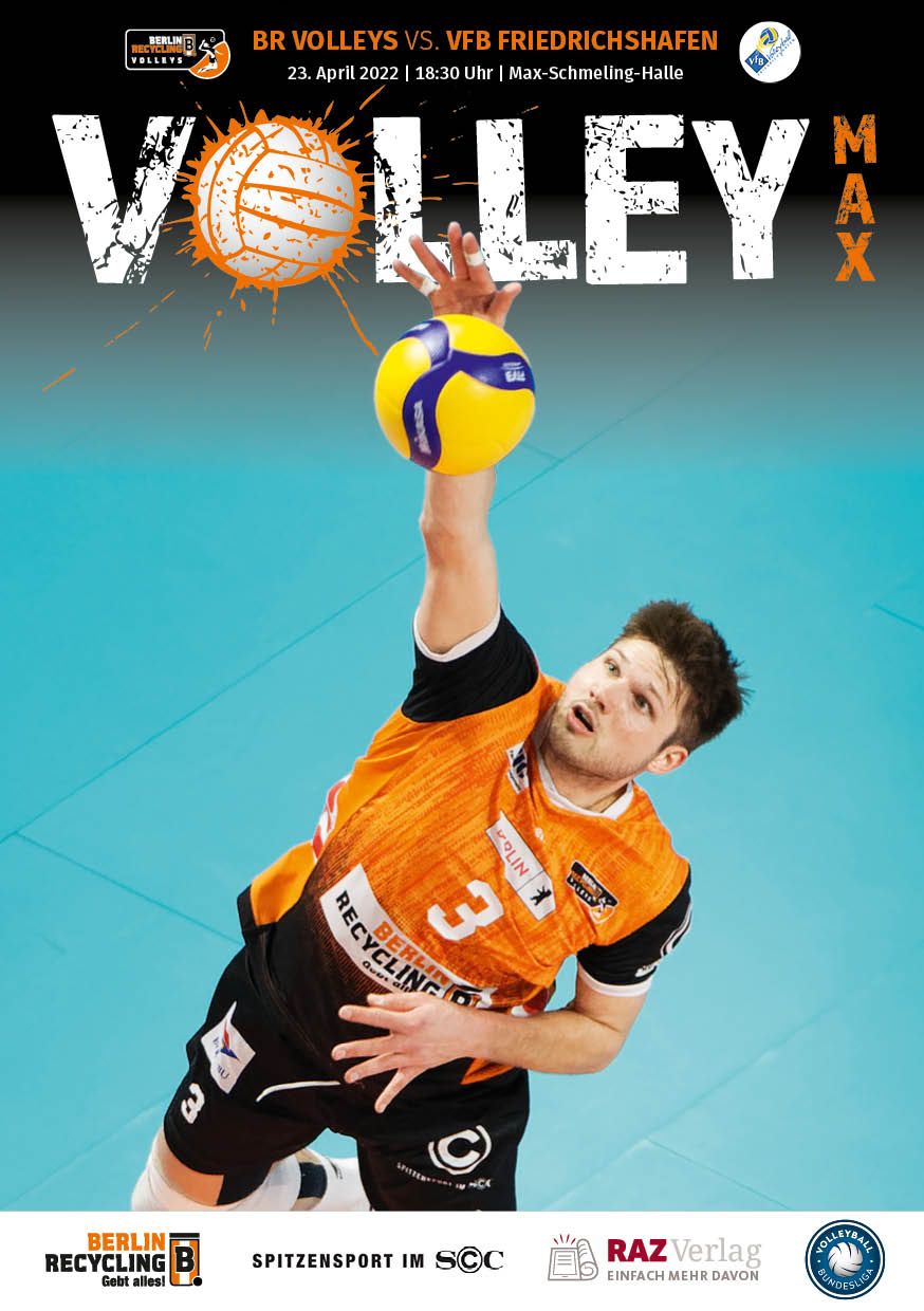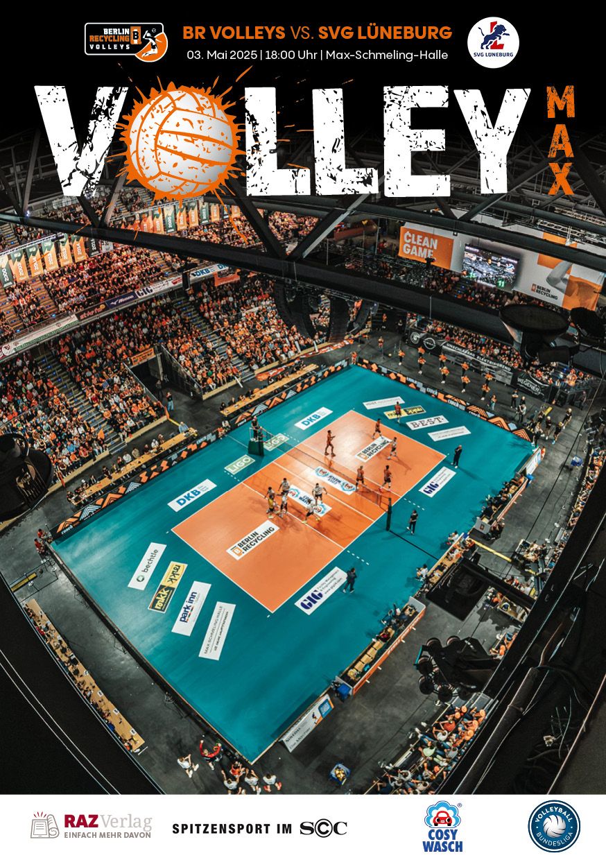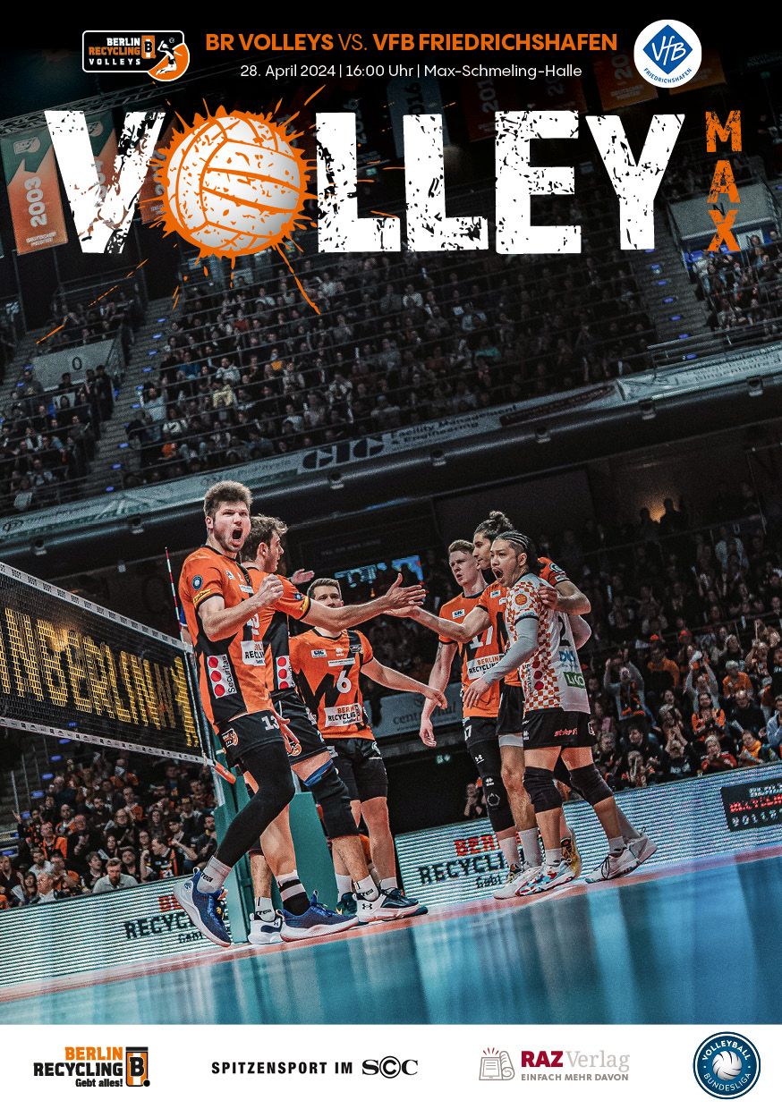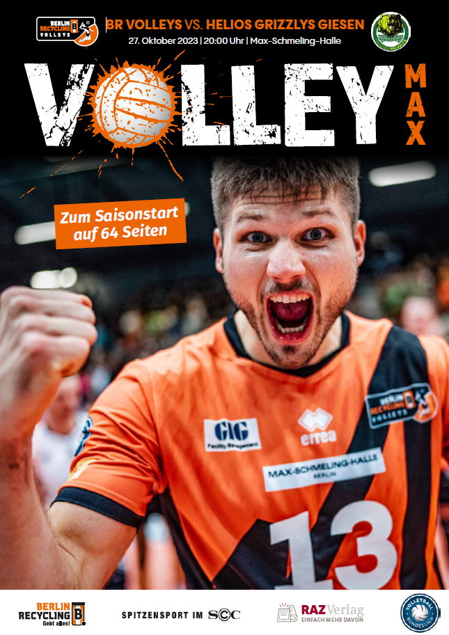 Gemeinsam mit dem RAZ Verlag veröffentlichen die BR Volleys zu jedem nationalen Heimspiel das Spieltagmagazin VOLLEY MAX. Kompakt und bildstark wird im handlichen A5-Format auf bis zu 32 Seiten das aktuelle Geschehen beim Hauptstadtclub beleuchtet. Das Magazin liegt bei jedem Heimspiel in der Max-Schmeling-Halle in begrenzter Stückzahl kostenlos am Fanshop und an den Fanclubständen aus und ist natürlich auch digital verfügbar.
