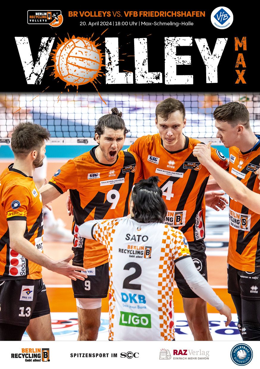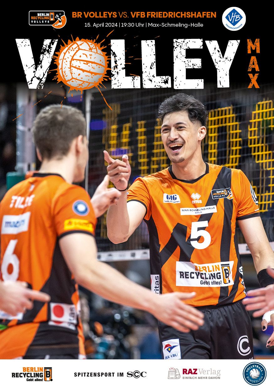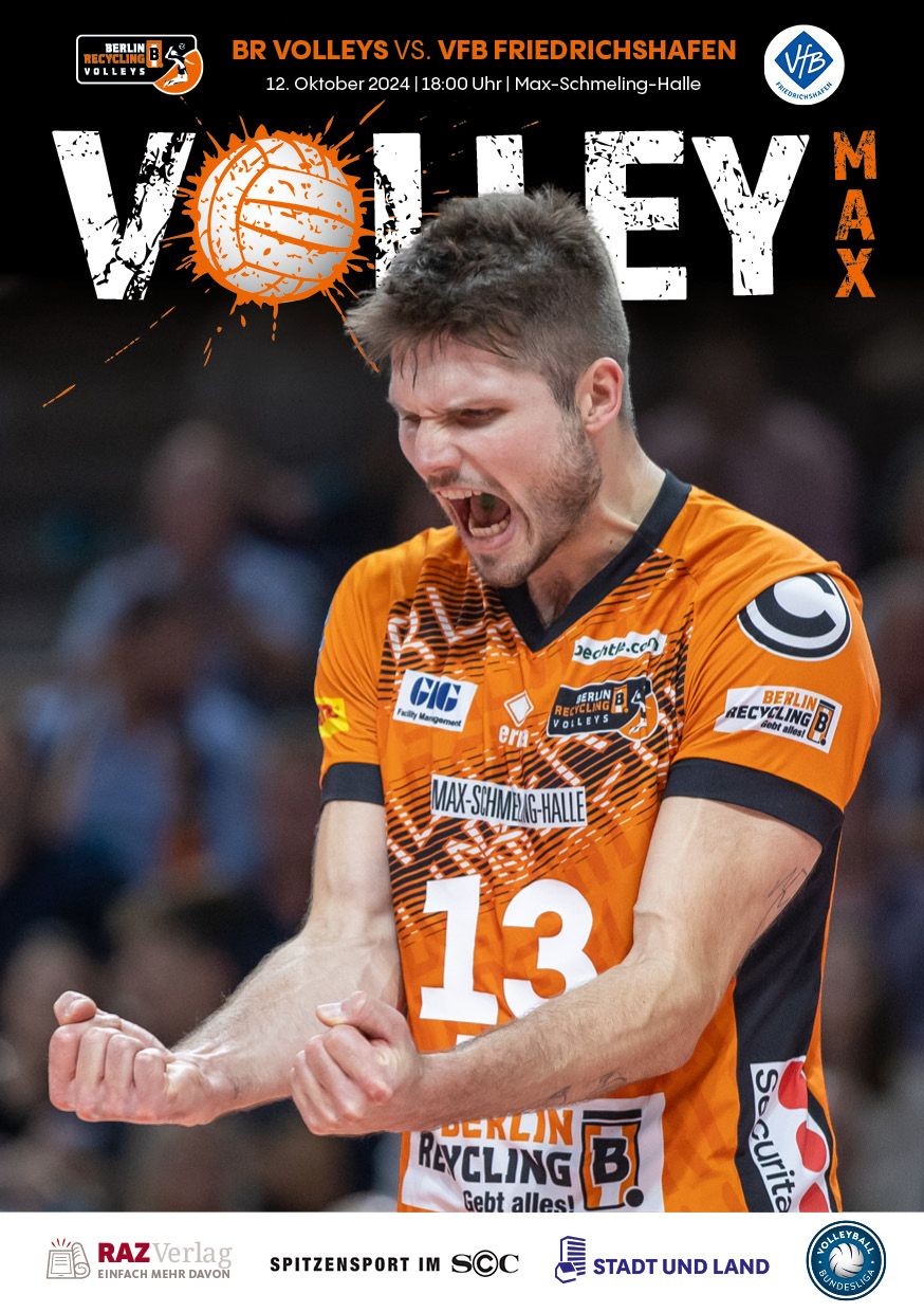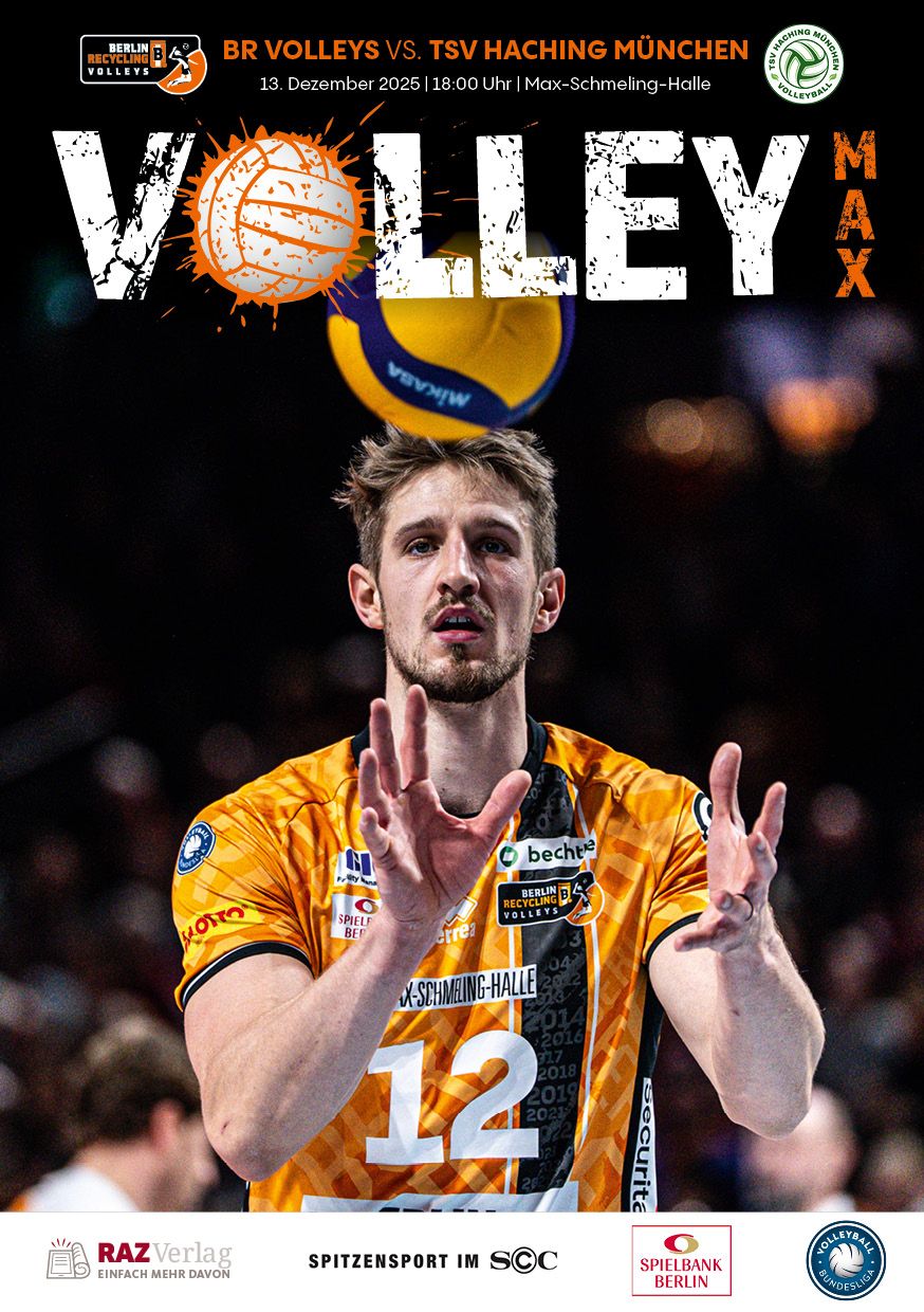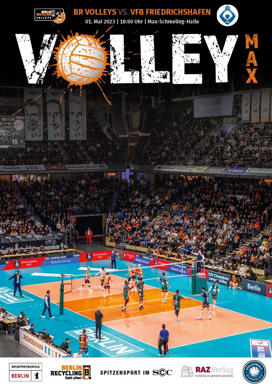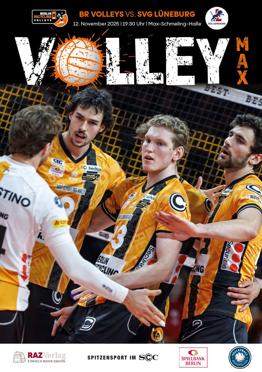 Gemeinsam mit dem RAZ Verlag veröffentlichen die BR Volleys zu jedem nationalen Heimspiel das Spieltagmagazin VOLLEY MAX. Kompakt und bildstark wird im handlichen A5-Format auf bis zu 32 Seiten das aktuelle Geschehen beim Hauptstadtclub beleuchtet. Das Magazin liegt bei jedem Heimspiel in der Max-Schmeling-Halle in begrenzter Stückzahl kostenlos am Fanshop und an den Fanclubständen aus und ist natürlich auch digital verfügbar.