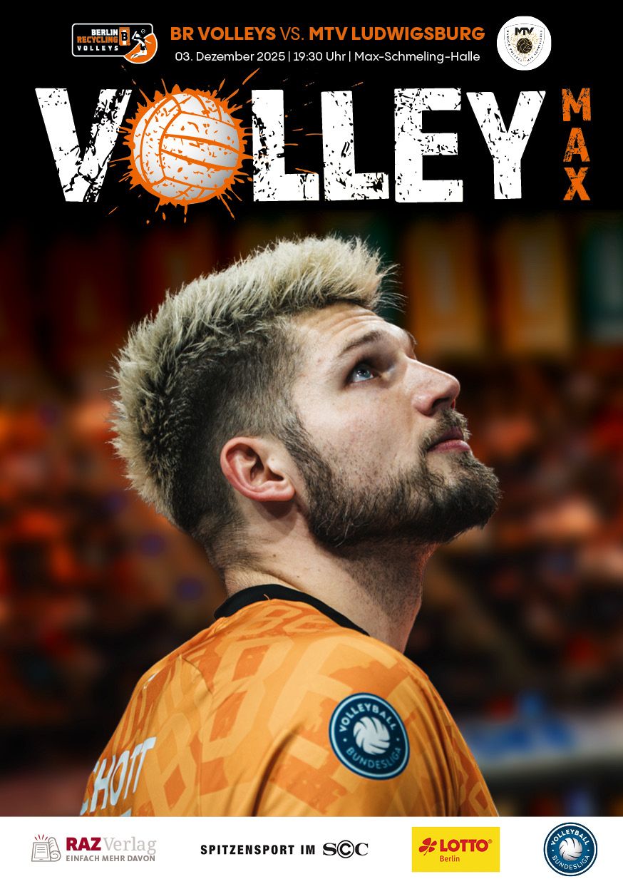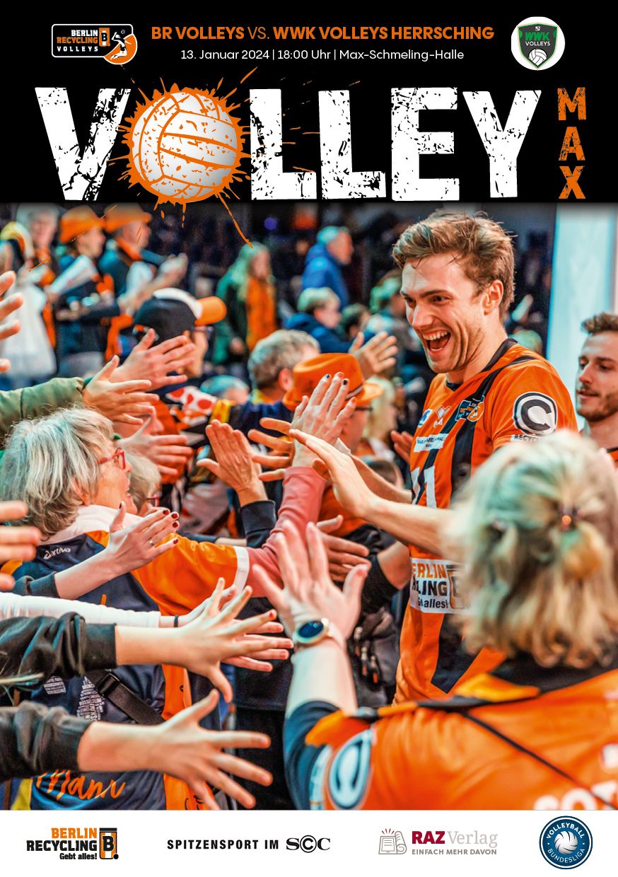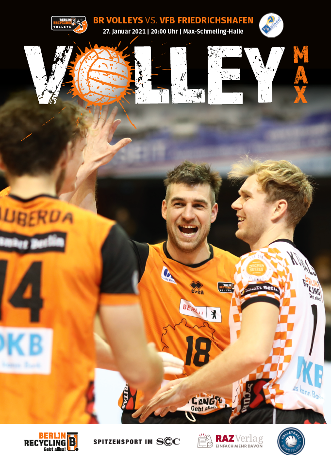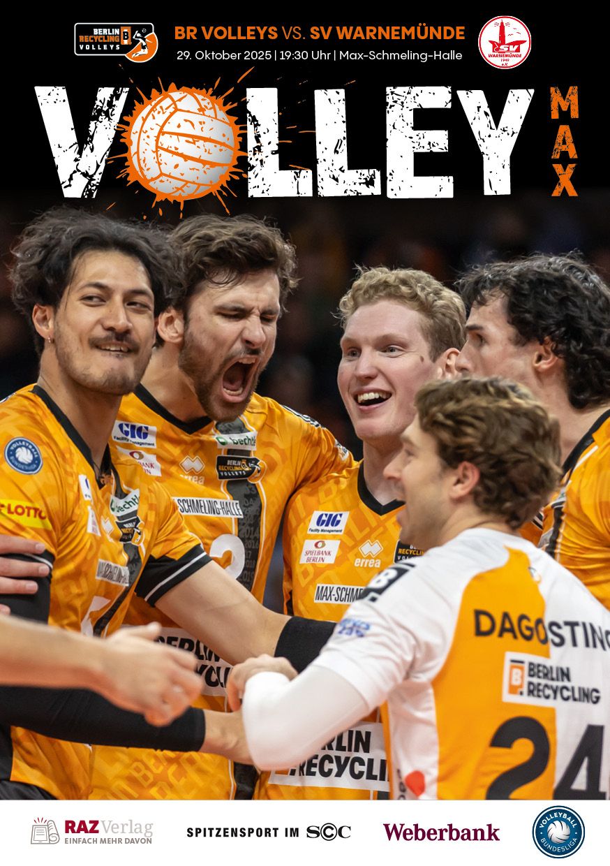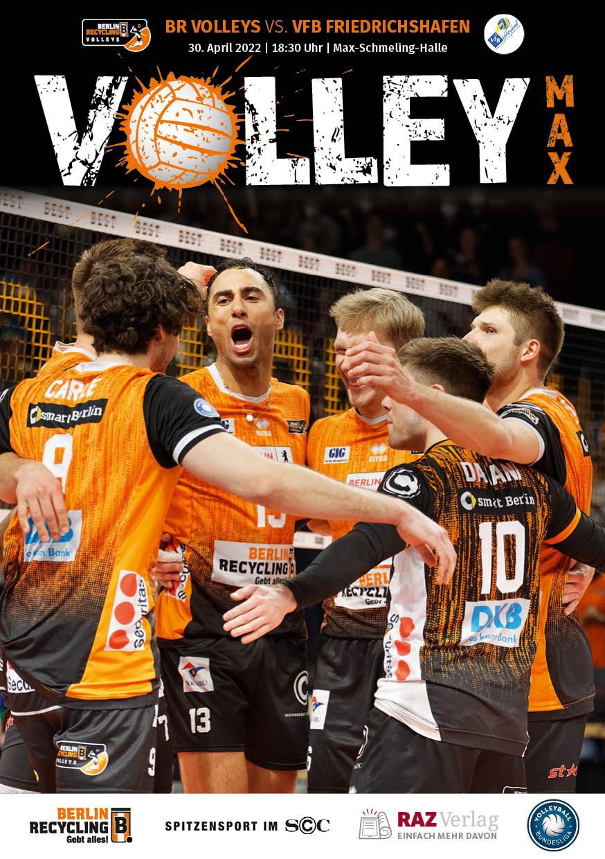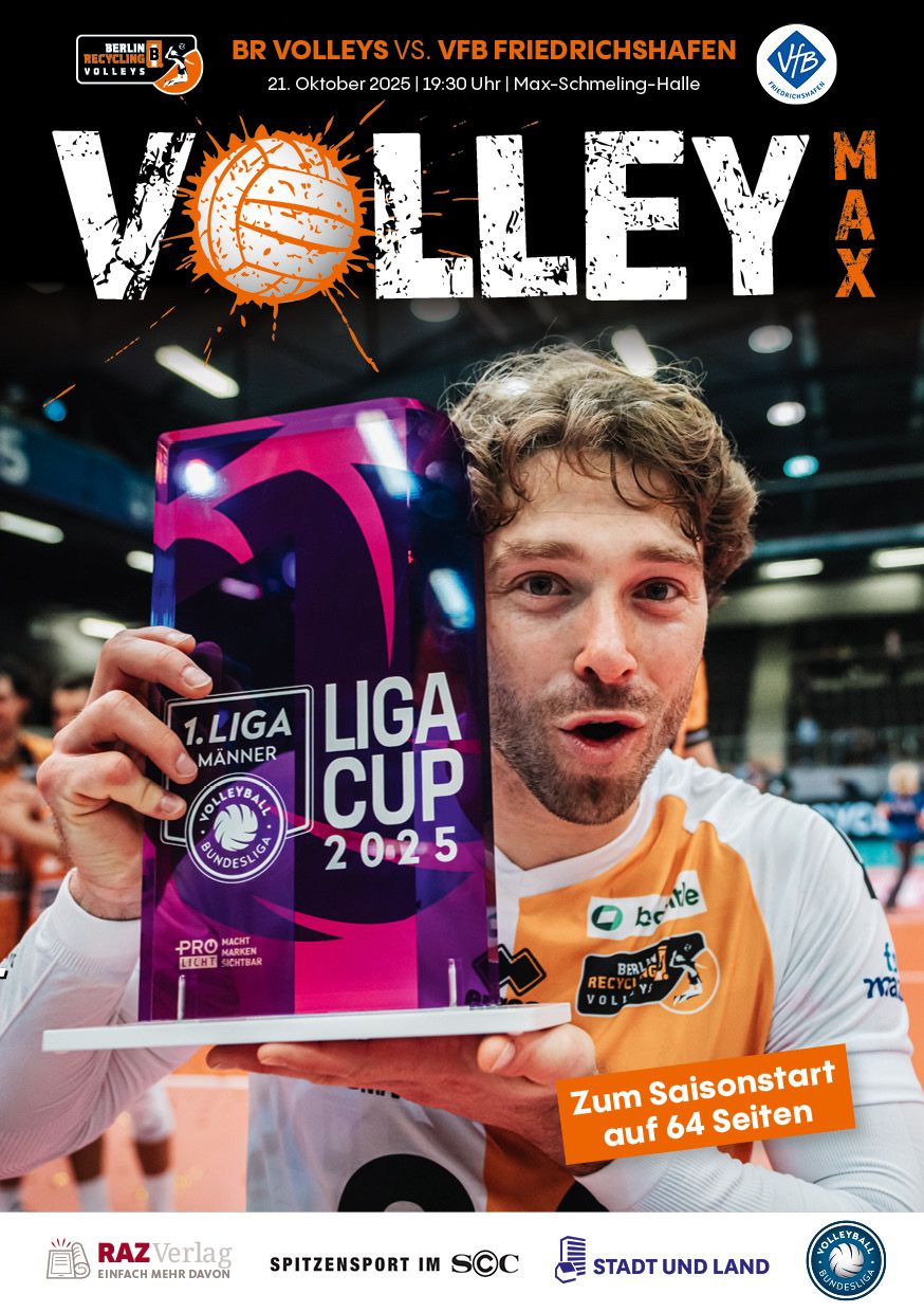 Gemeinsam mit dem RAZ Verlag veröffentlichen die BR Volleys zu jedem nationalen Heimspiel das Spieltagmagazin VOLLEY MAX. Kompakt und bildstark wird im handlichen A5-Format auf bis zu 32 Seiten das aktuelle Geschehen beim Hauptstadtclub beleuchtet. Das Magazin liegt bei jedem Heimspiel in der Max-Schmeling-Halle in begrenzter Stückzahl kostenlos am Fanshop und an den Fanclubständen aus und ist natürlich auch digital verfügbar.