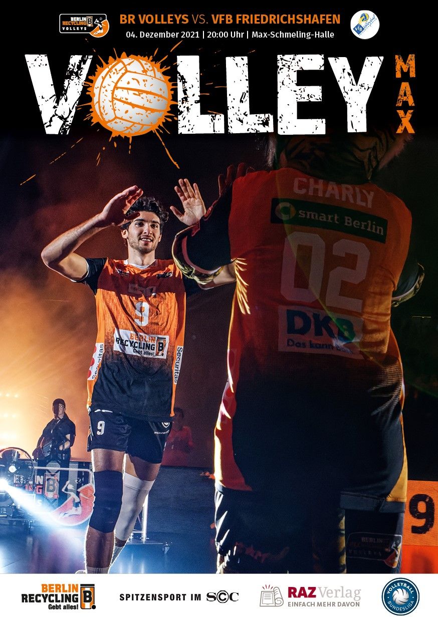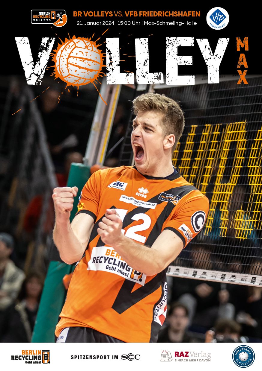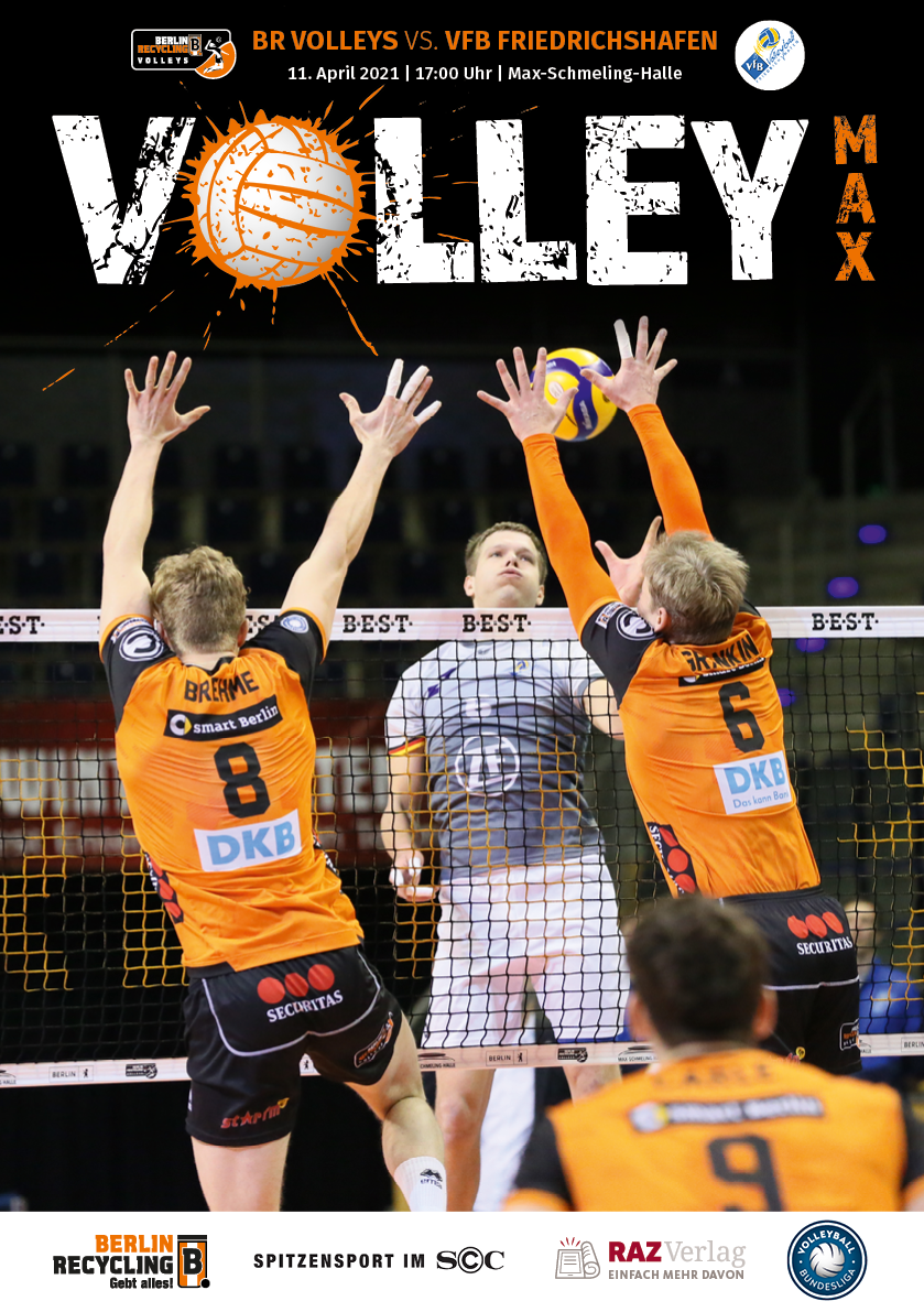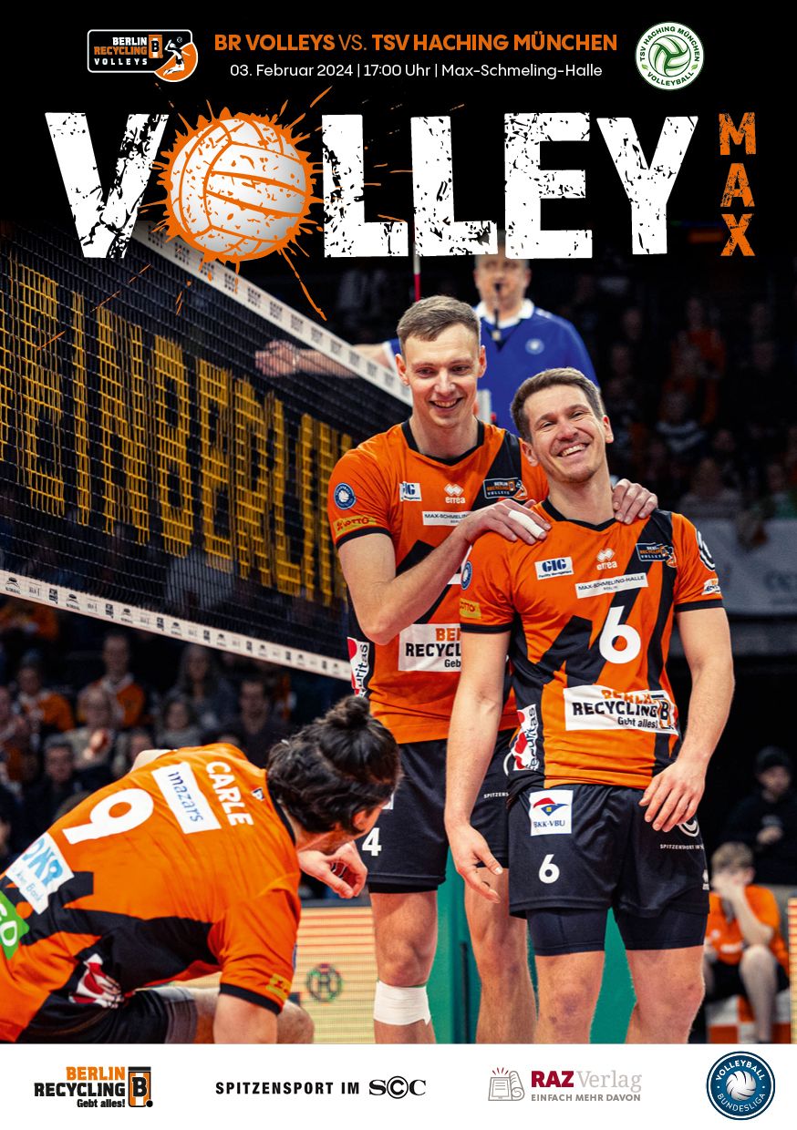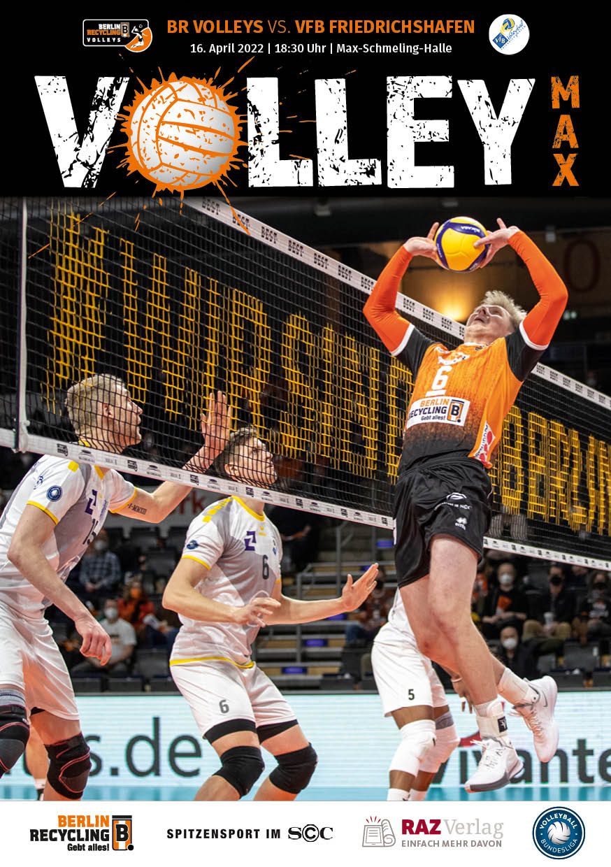 Gemeinsam mit dem RAZ Verlag veröffentlichen die BR Volleys zu jedem nationalen Heimspiel das Spieltagmagazin VOLLEY MAX. Kompakt und bildstark wird im handlichen A5-Format auf bis zu 32 Seiten das aktuelle Geschehen beim Hauptstadtclub beleuchtet. Das Magazin liegt bei jedem Heimspiel in der Max-Schmeling-Halle in begrenzter Stückzahl kostenlos am Fanshop und an den Fanclubständen aus und ist natürlich auch digital verfügbar.
