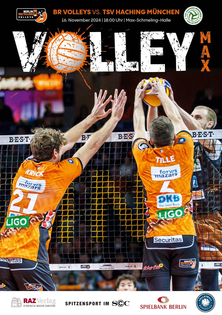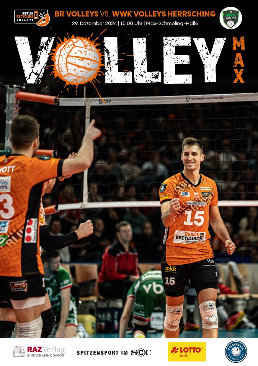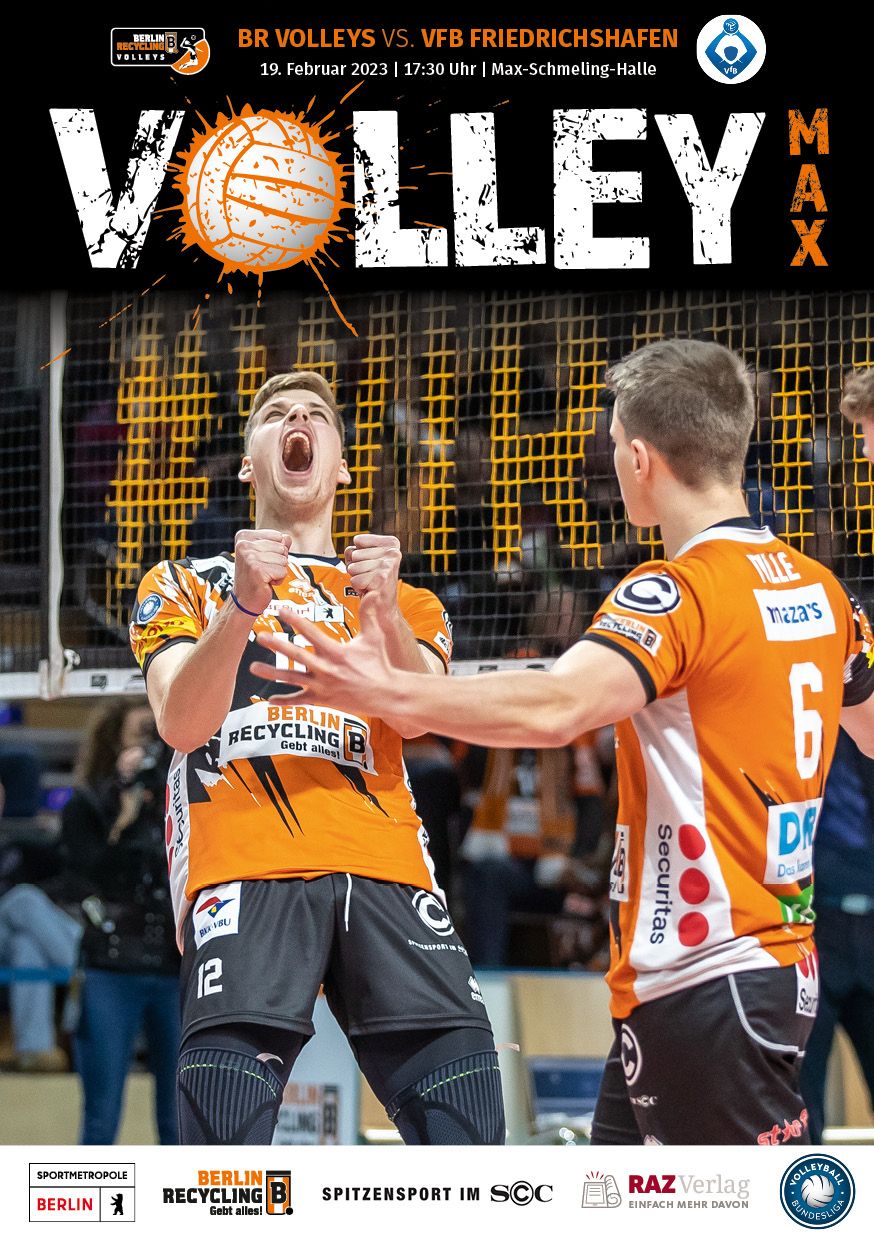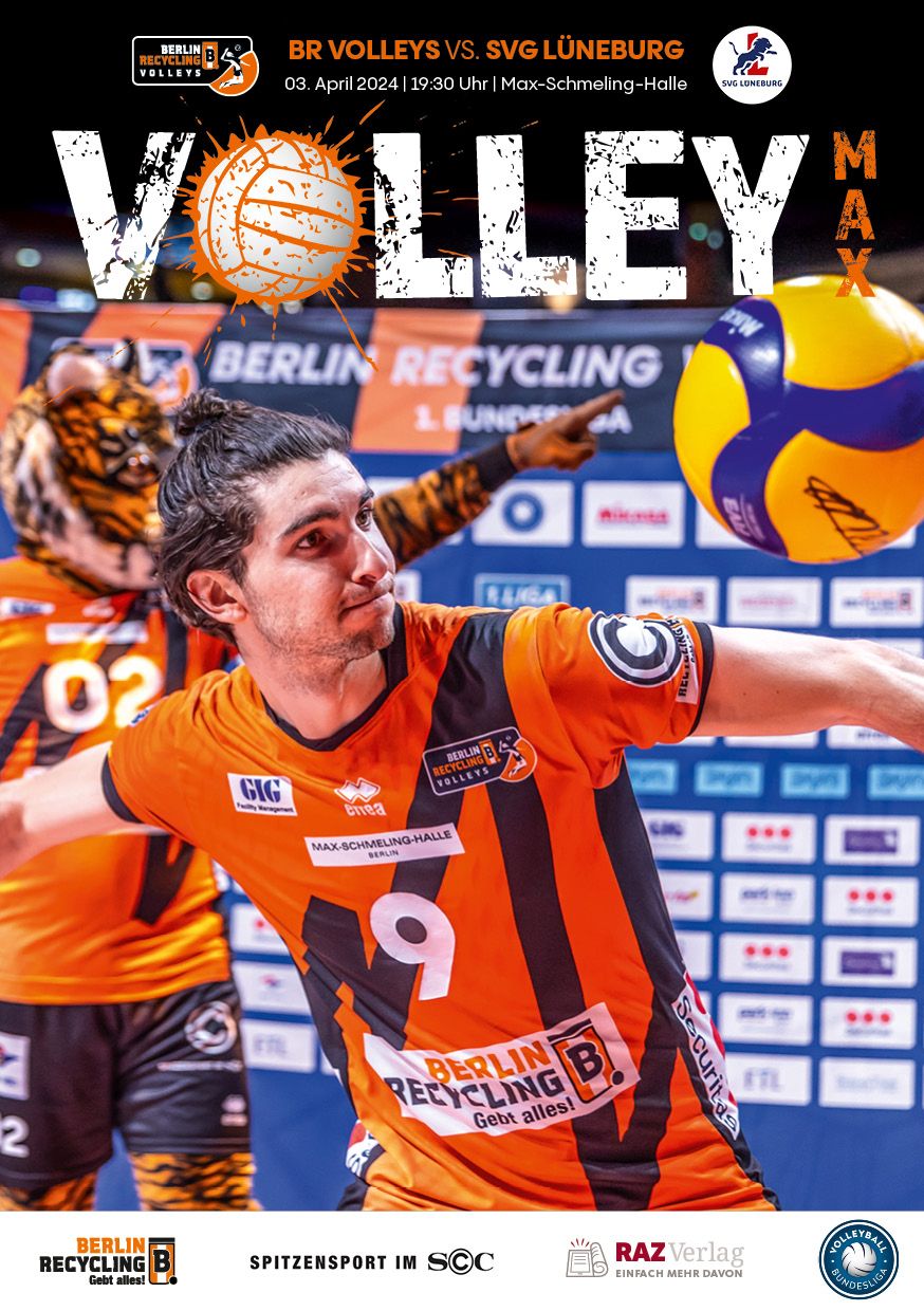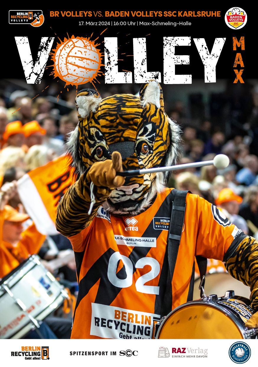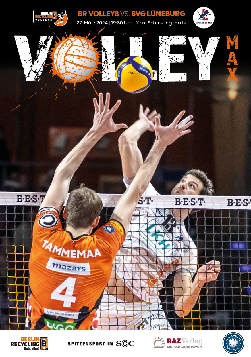 Gemeinsam mit dem RAZ Verlag veröffentlichen die BR Volleys zu jedem nationalen Heimspiel das Spieltagmagazin VOLLEY MAX. Kompakt und bildstark wird im handlichen A5-Format auf bis zu 32 Seiten das aktuelle Geschehen beim Hauptstadtclub beleuchtet. Das Magazin liegt bei jedem Heimspiel in der Max-Schmeling-Halle in begrenzter Stückzahl kostenlos am Fanshop und an den Fanclubständen aus und ist natürlich auch digital verfügbar.