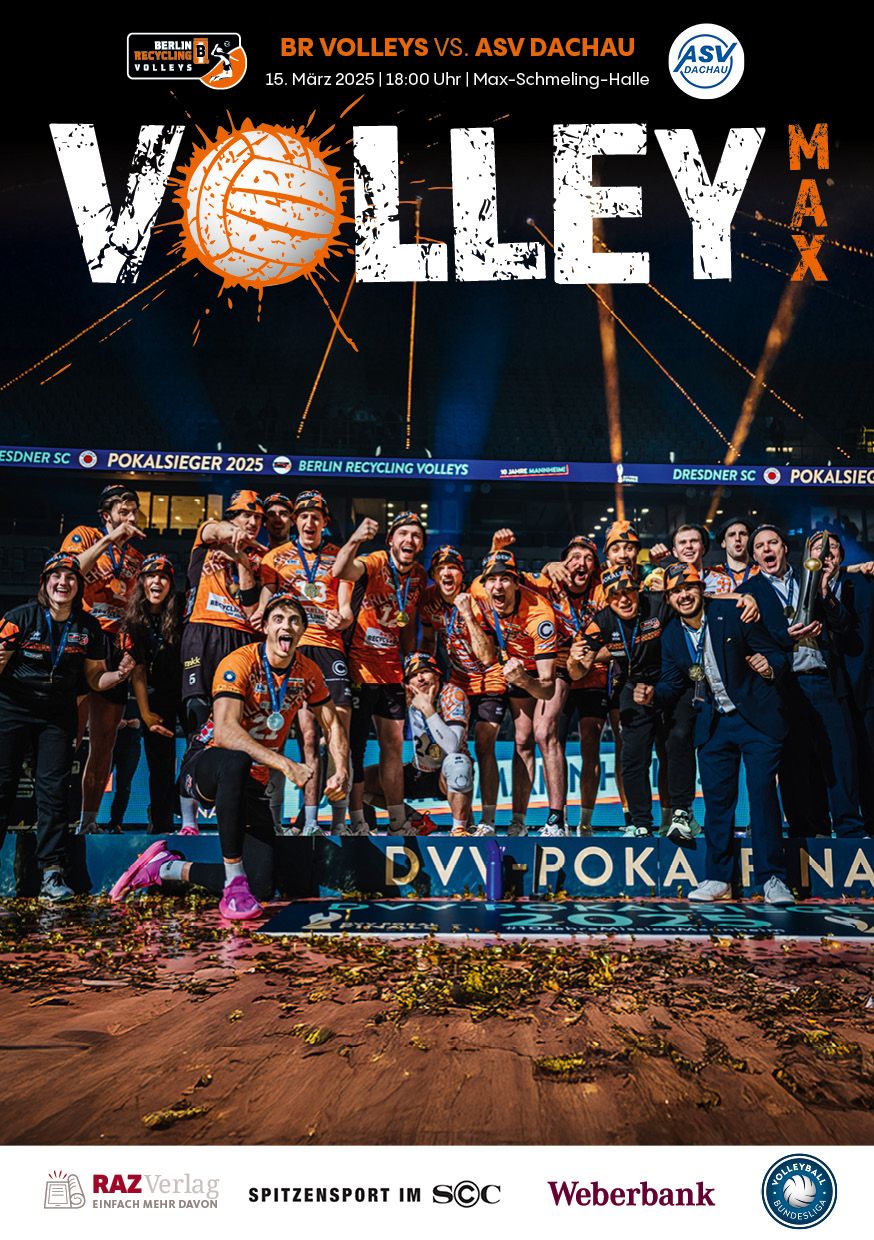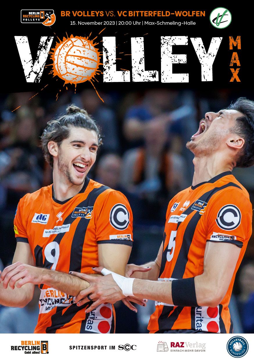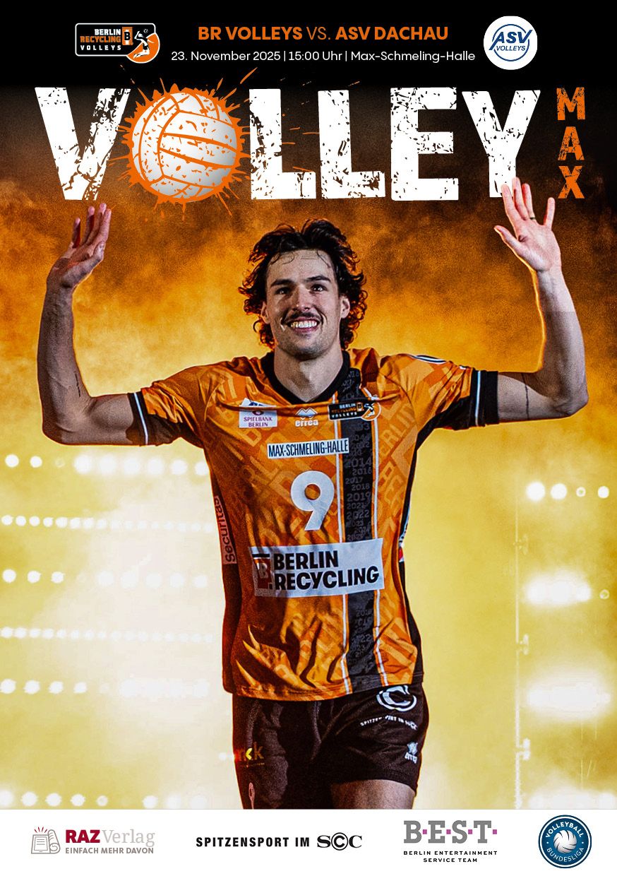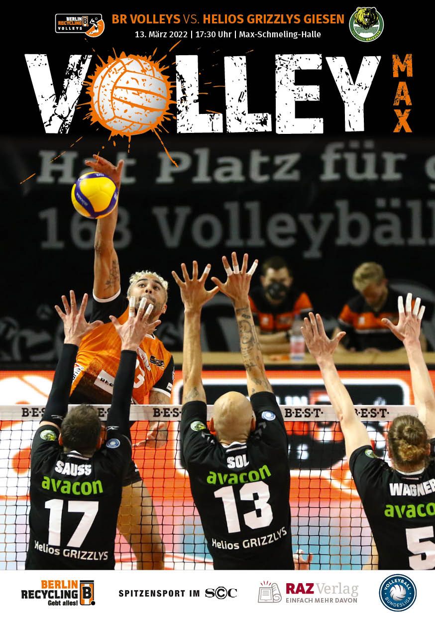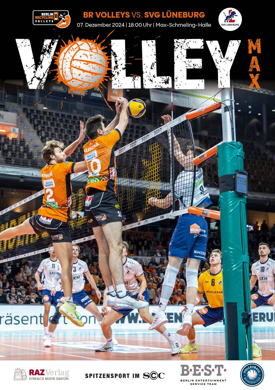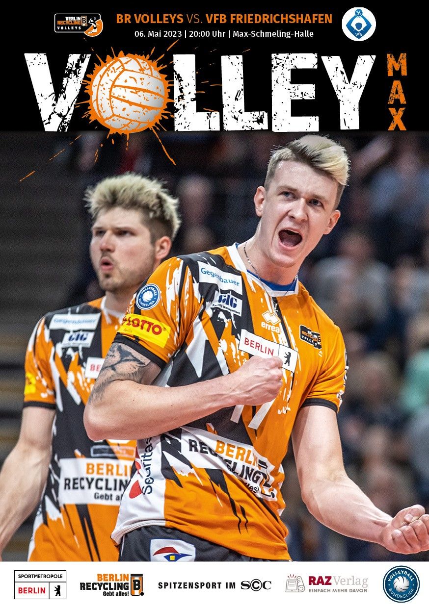 Gemeinsam mit dem RAZ Verlag veröffentlichen die BR Volleys zu jedem nationalen Heimspiel das Spieltagmagazin VOLLEY MAX. Kompakt und bildstark wird im handlichen A5-Format auf bis zu 32 Seiten das aktuelle Geschehen beim Hauptstadtclub beleuchtet. Das Magazin liegt bei jedem Heimspiel in der Max-Schmeling-Halle in begrenzter Stückzahl kostenlos am Fanshop und an den Fanclubständen aus und ist natürlich auch digital verfügbar.