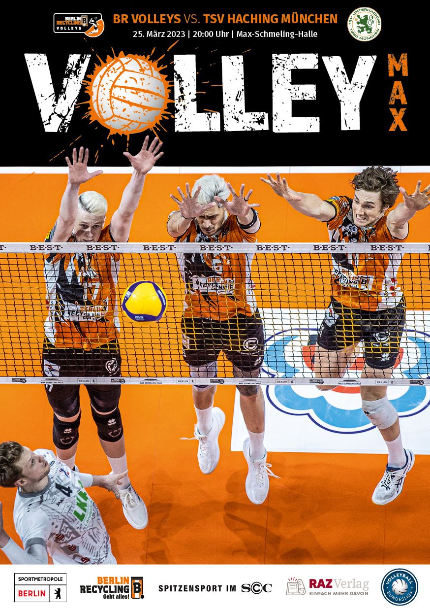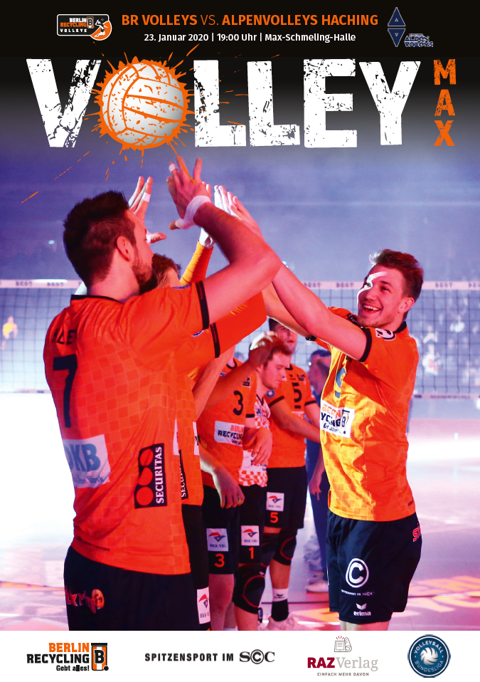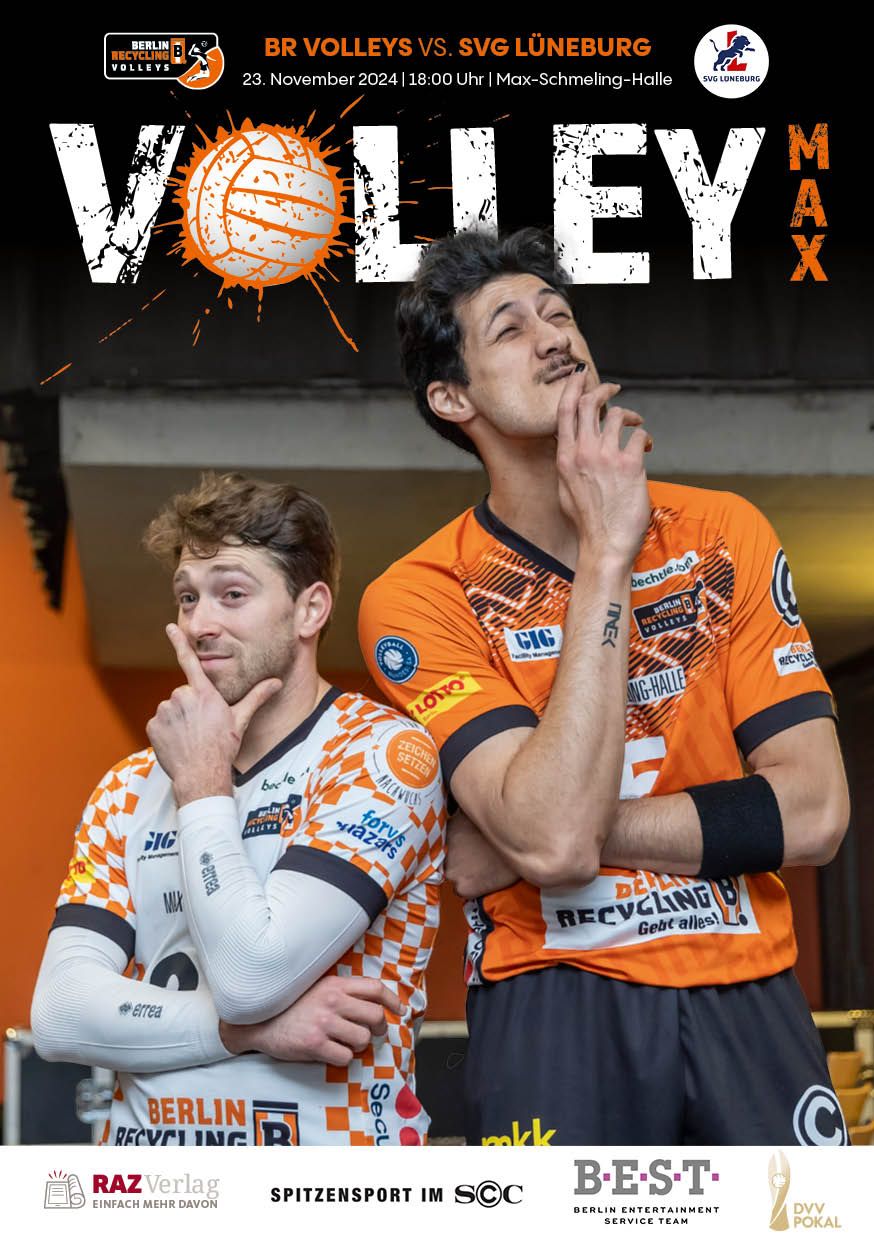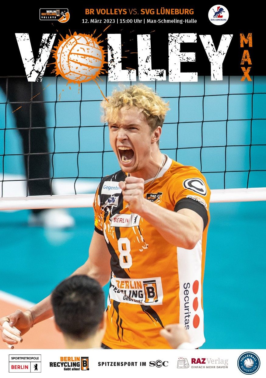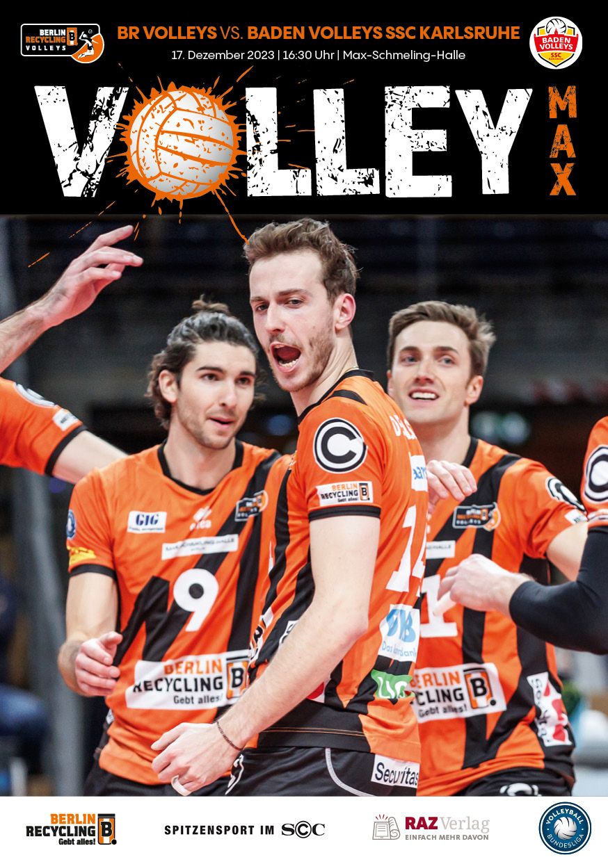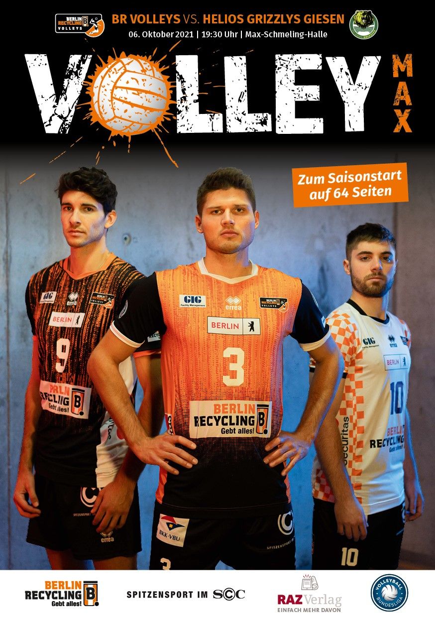 Gemeinsam mit dem RAZ Verlag veröffentlichen die BR Volleys zu jedem nationalen Heimspiel das Spieltagmagazin VOLLEY MAX. Kompakt und bildstark wird im handlichen A5-Format auf bis zu 32 Seiten das aktuelle Geschehen beim Hauptstadtclub beleuchtet. Das Magazin liegt bei jedem Heimspiel in der Max-Schmeling-Halle in begrenzter Stückzahl kostenlos am Fanshop und an den Fanclubständen aus und ist natürlich auch digital verfügbar.