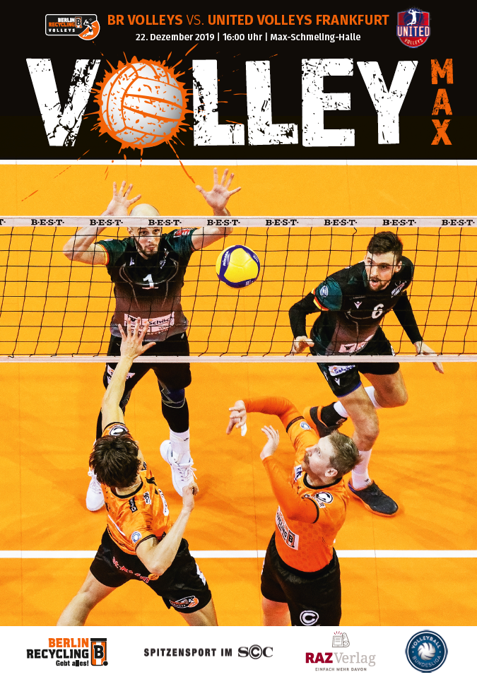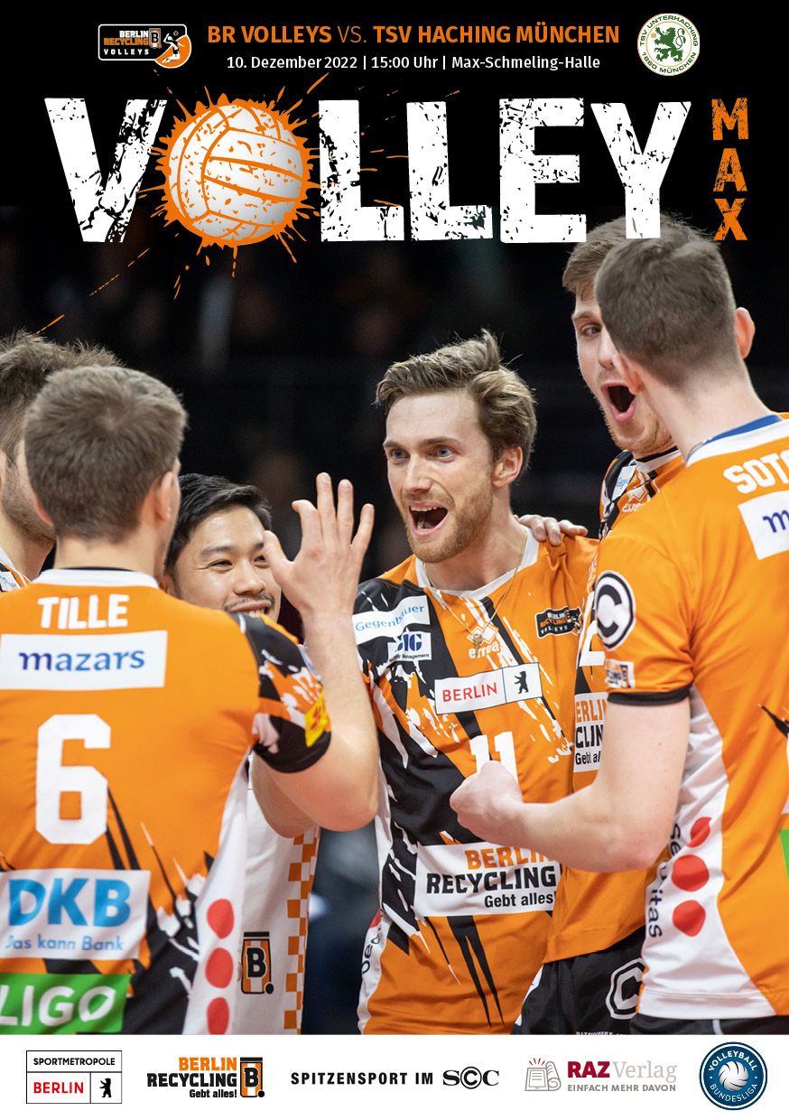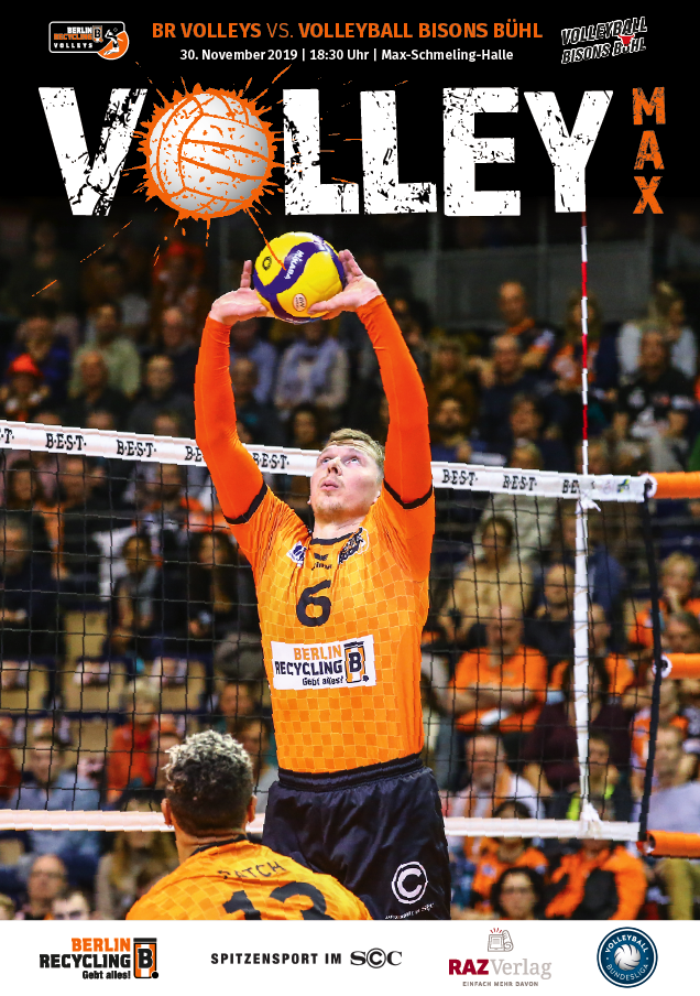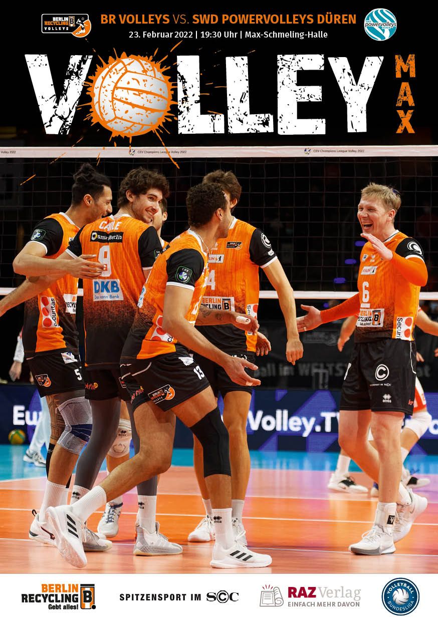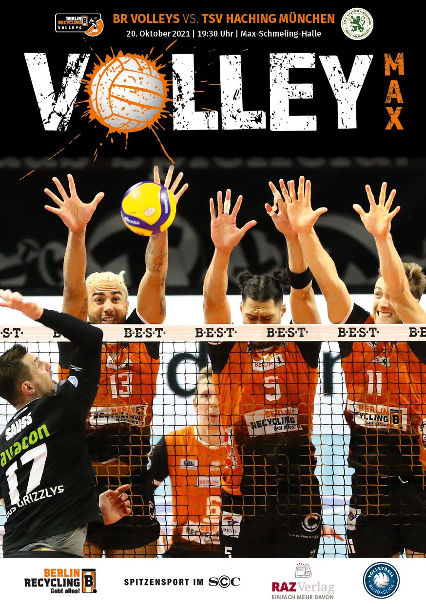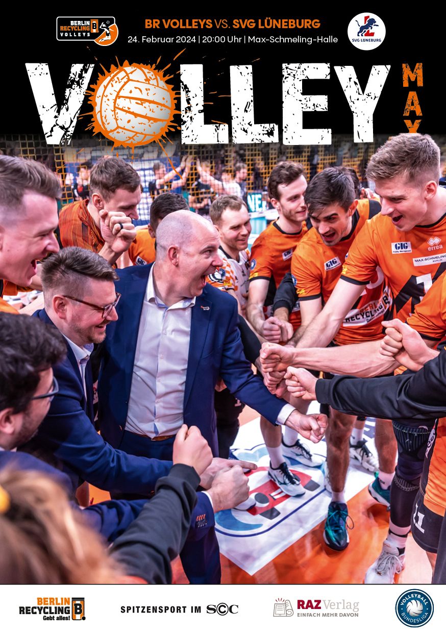 Gemeinsam mit dem RAZ Verlag veröffentlichen die BR Volleys zu jedem nationalen Heimspiel das Spieltagmagazin VOLLEY MAX. Kompakt und bildstark wird im handlichen A5-Format auf bis zu 32 Seiten das aktuelle Geschehen beim Hauptstadtclub beleuchtet. Das Magazin liegt bei jedem Heimspiel in der Max-Schmeling-Halle in begrenzter Stückzahl kostenlos am Fanshop und an den Fanclubständen aus und ist natürlich auch digital verfügbar.