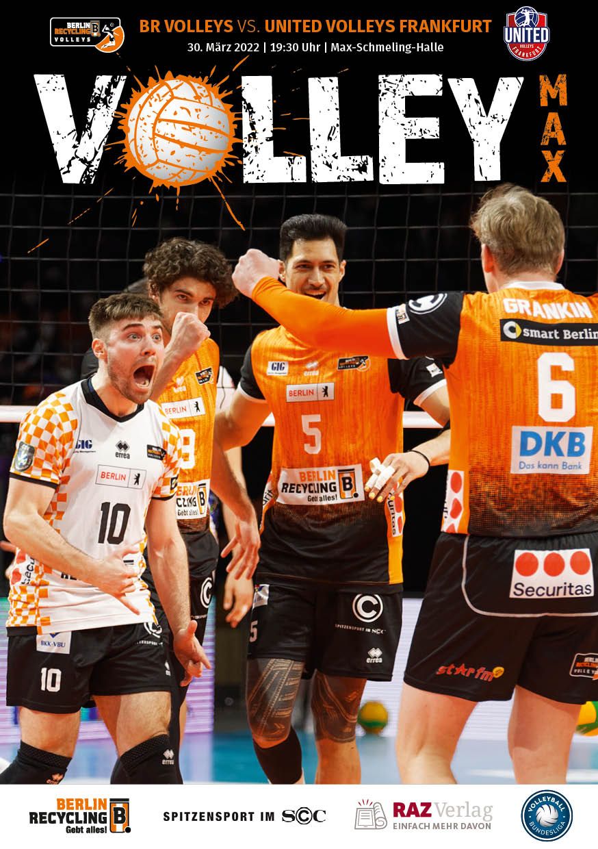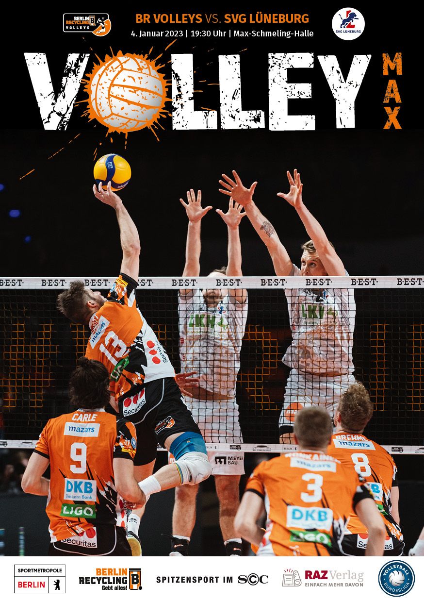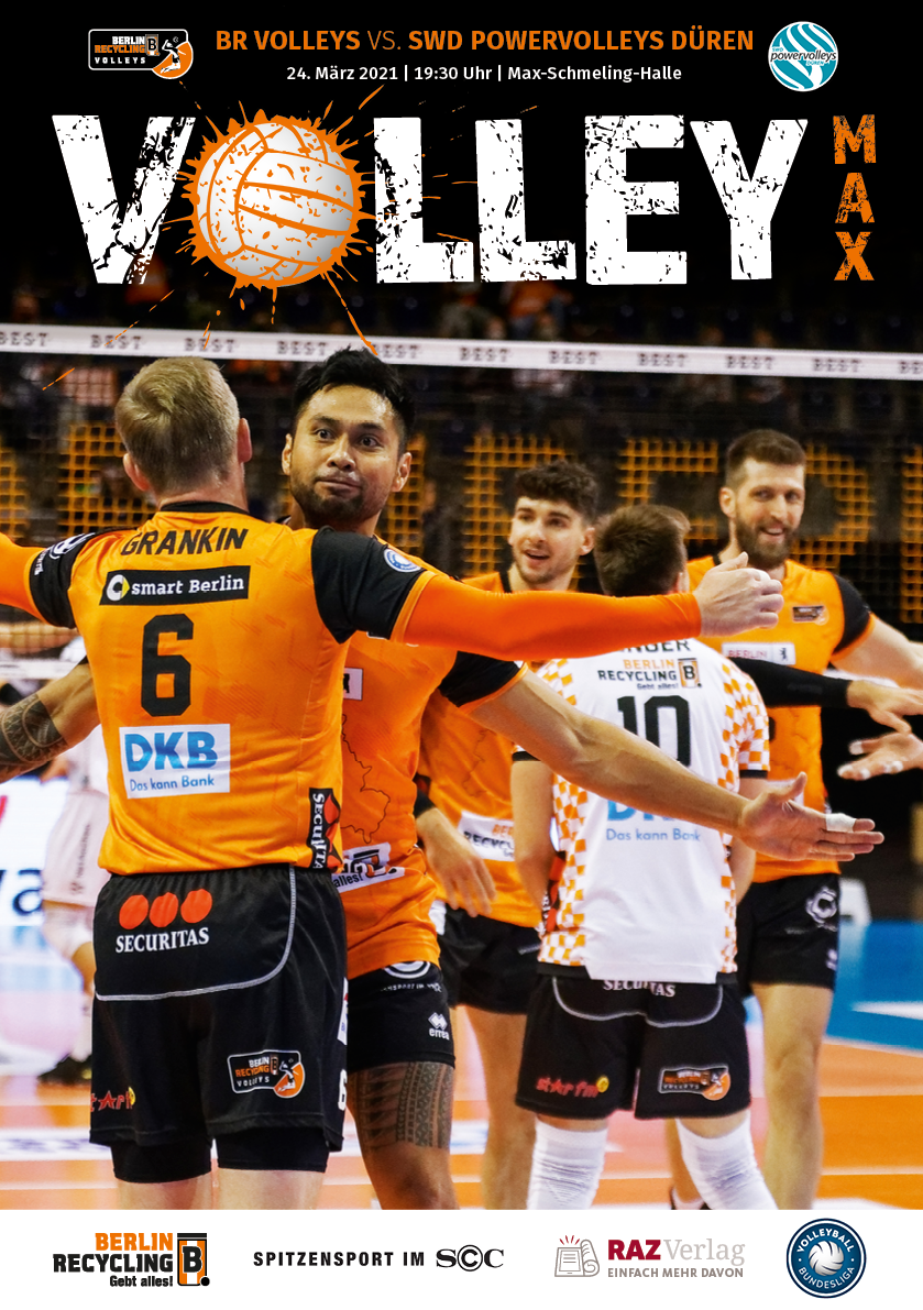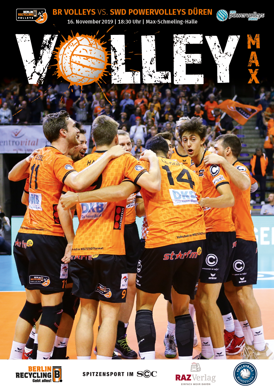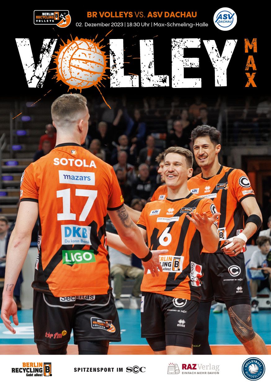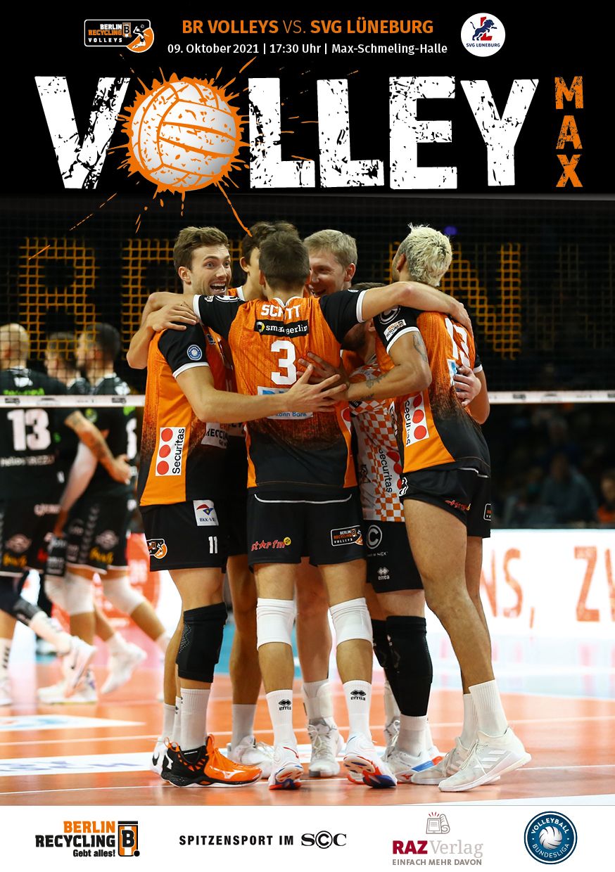 Gemeinsam mit dem RAZ Verlag veröffentlichen die BR Volleys zu jedem nationalen Heimspiel das Spieltagmagazin VOLLEY MAX. Kompakt und bildstark wird im handlichen A5-Format auf bis zu 32 Seiten das aktuelle Geschehen beim Hauptstadtclub beleuchtet. Das Magazin liegt bei jedem Heimspiel in der Max-Schmeling-Halle in begrenzter Stückzahl kostenlos am Fanshop und an den Fanclubständen aus und ist natürlich auch digital verfügbar.