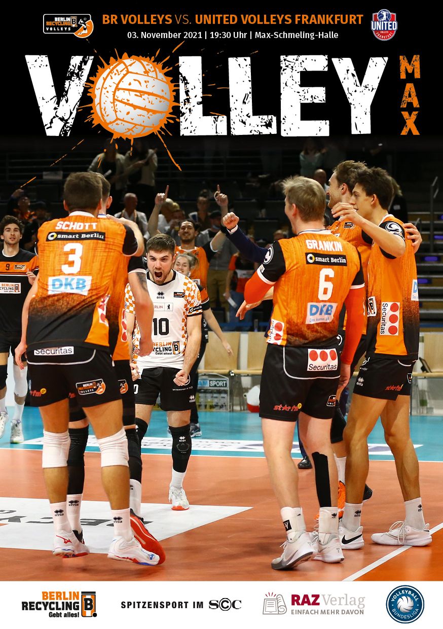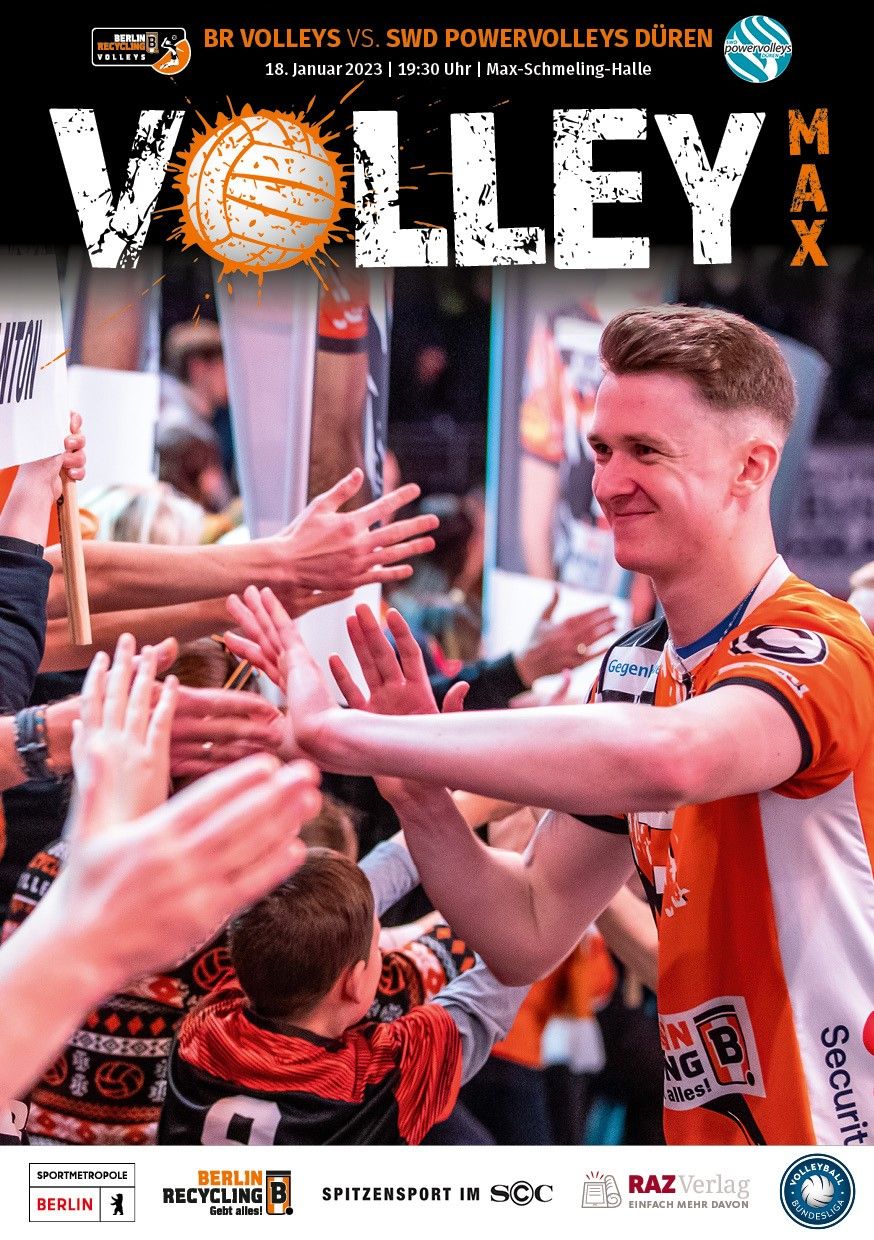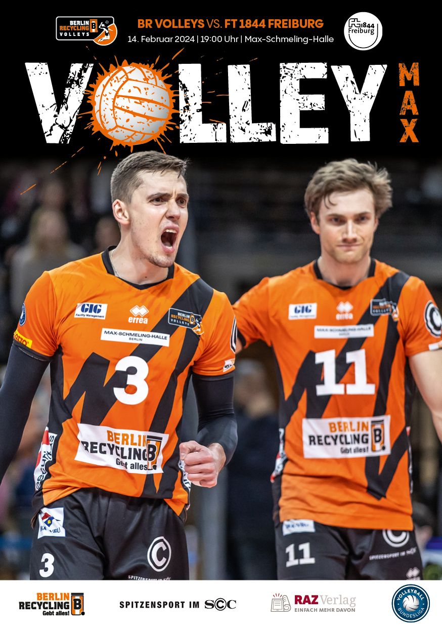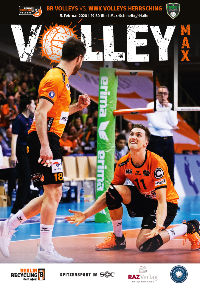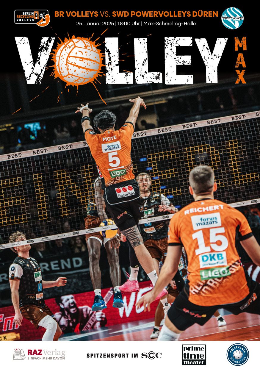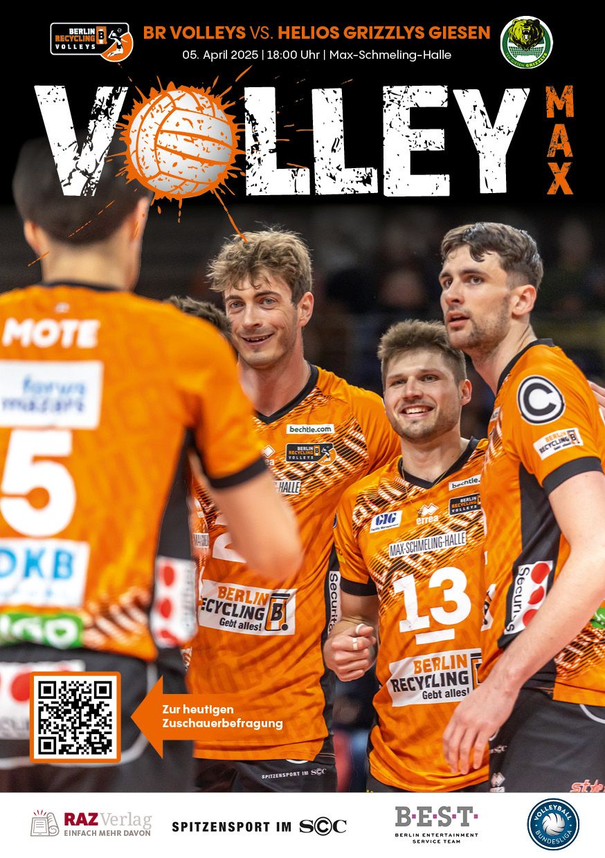 Gemeinsam mit dem RAZ Verlag veröffentlichen die BR Volleys zu jedem nationalen Heimspiel das Spieltagmagazin VOLLEY MAX. Kompakt und bildstark wird im handlichen A5-Format auf bis zu 32 Seiten das aktuelle Geschehen beim Hauptstadtclub beleuchtet. Das Magazin liegt bei jedem Heimspiel in der Max-Schmeling-Halle in begrenzter Stückzahl kostenlos am Fanshop und an den Fanclubständen aus und ist natürlich auch digital verfügbar.