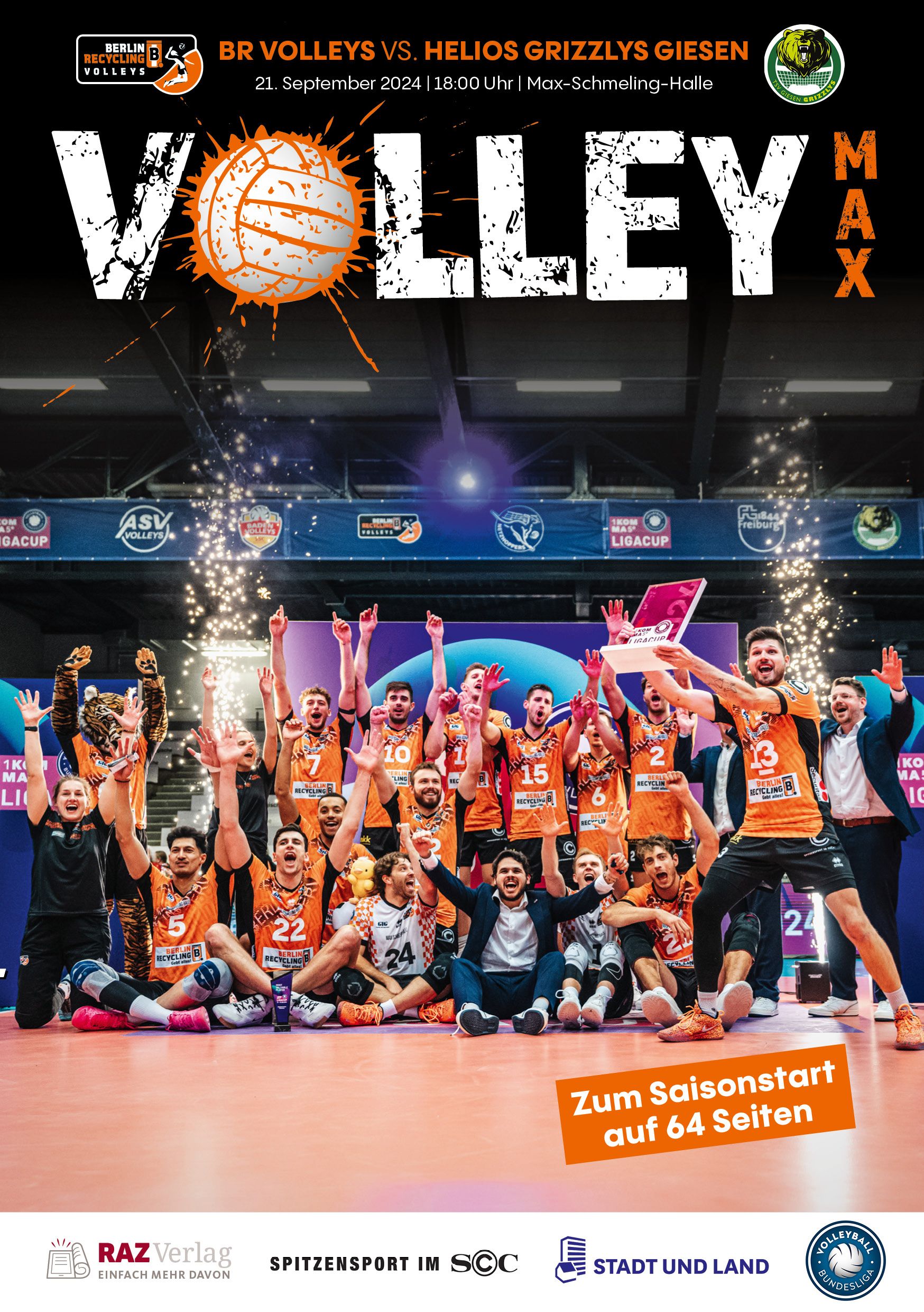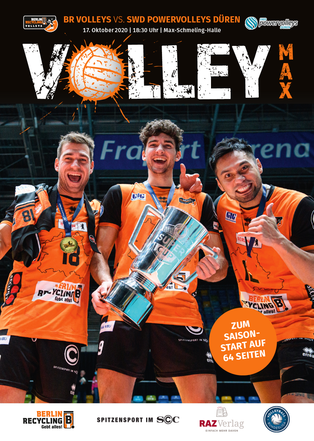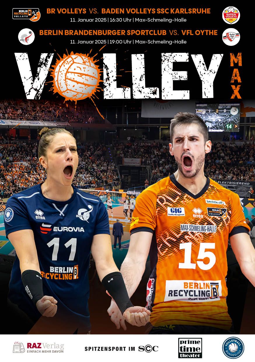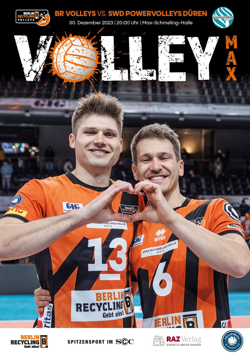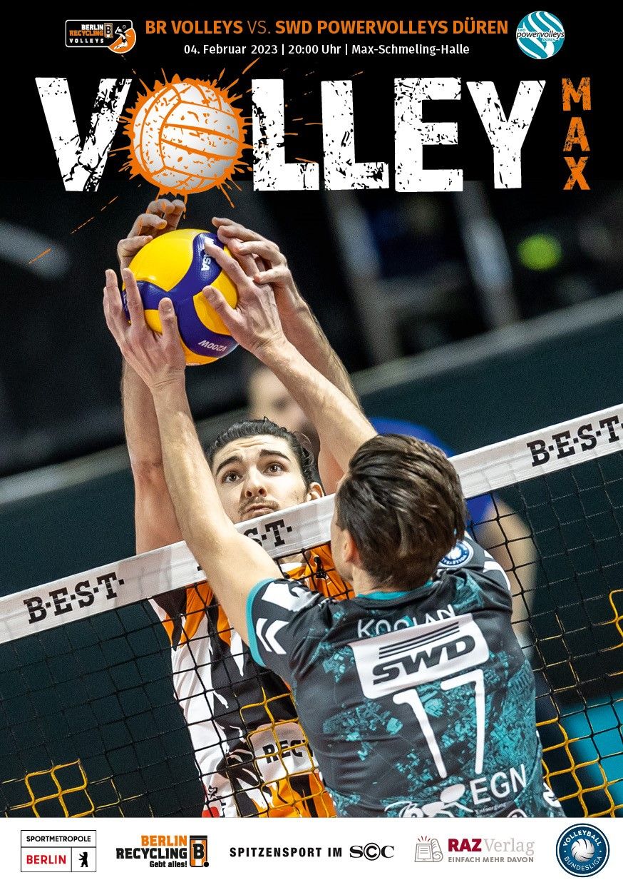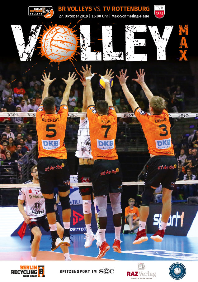 Gemeinsam mit dem RAZ Verlag veröffentlichen die BR Volleys zu jedem nationalen Heimspiel das Spieltagmagazin VOLLEY MAX. Kompakt und bildstark wird im handlichen A5-Format auf bis zu 32 Seiten das aktuelle Geschehen beim Hauptstadtclub beleuchtet. Das Magazin liegt bei jedem Heimspiel in der Max-Schmeling-Halle in begrenzter Stückzahl kostenlos am Fanshop und an den Fanclubständen aus und ist natürlich auch digital verfügbar.