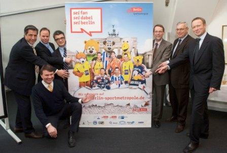 Die Berliner Spitzenteams von Hertha BSC, EHC Eisbären, ALBA, Füchse und SCC BERLIN Volleyball sowie die Top-Arenen Olympiastadion, O2 World, Max-Schmeling-Halle und Velodrom präsentieren sich ab sofort gemeinsam im Internet. |