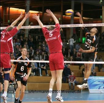 konnten die Volleyballer des SCC BERLIN zum Abschluss der Bundesliga-Hauptrunde tanken. Ein verdienter 3:1 (25:23, 25:20, 20:25, 25:19) Auswärtserfolg bei Pokalsieger Generali Haching bedeutete für die Mannschaft von Trainer Andrej Urnaut den 15. Saisonsieg. |