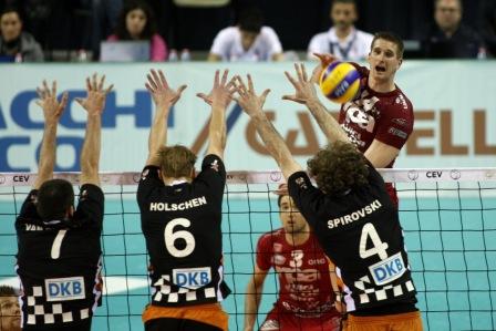 Allerdings boten die Männer um Kapitän Jaroslav Skach dem Ausrichter des Finalturniers und Topfavoriten auf den Titelgewinn über weite Strecken erstaunlich Paroli. Lediglich im Auftaktsatz zeigten die Schützlinge von Trainer Andrej Urnaut zu viel Respekt vor dem Starensemble aus Umbrien. Im Schlussdurchgang hatten die Berliner sogar vier Satzbälle, die aber allesamt von einer Aufschlagserie des überragenden Cristian Savani zunichte gemacht wurden.