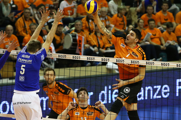 „Ich hatte ein langes Gespräch mit Cedric, welches sehr positiv war. Er wollte mich gern zurück nach Berlin holen und ich habe mich natürlich an die unglaubliche Saison 15/16 erinnert. Danach haben wir gemeinsam mit Kaweh einen Weg gefunden, der mein Comeback möglich macht“, berichtet Nicolas Le Goff, wie es dazu kam, dass der französische Nationalspieler im neuen Spieljahr 18/19 sicherlich zur Freude vieler Fans wieder in der Max-Schmeling-Halle auflaufen wird. Der bullige und 2,06 Meter große Mittelblocker wurde mit den BR Volleys im Jahr 2016 Triplesieger, gewann also in nur einer Saison die Deutsche Meisterschaft, den DVV-Pokal und den CEV-Cup. Ein lukratives Angebot von Istanbul BBSK verschlug ihn anschließend in die Türkei, danach versuchte er sich in Italien bei Top Volley Latina. Mit beiden Vereinen reichte es in der Liga nur zum achten Rang, wobei es auch für Le Goff persönlich nicht immer rund lief. Er kämpfte regelmäßig mit Verletzungen, hat diese aber nun überwunden und konnte im Sommer in der "Volleyball Nations League" mit Frankreich die Silbermedaille gewinnen. „Wir hatten zahlreiche Bewerbungen für diese Position, letztlich haben wir uns für Nicolas entschieden, weil wir bei ihm wissen, woran wir sind. Für mich ist Nicolas einer der renommiertesten Mittelblocker in Europa“, schätzt BR Volleys Geschäftsführer Kaweh Niroomand die Qualitäten des Franzosen, den er vor zwei Jahren mit den Worten „Du bist jederzeit wieder herzlich willkommen“ verabschiedete. Nun erwartet ihn an alter Wirkungsstätte ein runderneuertes Team, in dem Sebastian Kühner der letzte verbliebende Akteur aus der damaligen „Triple-Saison“ ist. Neben den Erinnerungen an diese erfolgreiche Zeit und die begeisterungsfähige Berliner Fangemeinde war auch das Engagement von Enard ein wesentlicher Grund für die Rückkehr des 26-Jährigen: „Ich kenne Cedric schon lange und glaube, er wird dem Verein und uns Spielern guttun. Es war und ist mir immer eine Freude mit ihm zu arbeiten, weil er ein guter Trainer und Mensch ist. Mir kann er natürlich ganz speziell helfen, weil Cedric als ehemaliger Mittelblocker genau weiß, worauf es auf meiner Position ankommt.“ Enard kennt Le Goff seit seiner Zeit im Nachwuchsleistungszentrum von Montpellier, Vorteile wird es jedoch für ihn dadurch nicht geben, stellt der Trainer klar: „Für mich ist es nicht wichtig, ob Nico französisch spricht, sondern was er in unser Team einbringt. Als ich mit Kaweh über ihn und auch Samuele Tuia sprach, ging es natürlich um ihr Volleyballniveau, genauso wie um ihren Kampf- und Teamgeist. Ich weiß, beide können uns davon viel geben.“ Während Enard schon in der kommenden Woche für eine kurze Stippvisite zum Trainingsauftakt (20. Aug) in die deutsche Hauptstadt kommt, lässt das finale Comeback von Le Goff noch eine Weile auf sich warten. Beide hoffen, mit der französischen Nationalmannschaft bei der Weltmeisterschaft in Bulgarien & Italien möglichst bis zum Endspiel am 30. Sep im Wettbewerb zu bleiben. Danach hat Le Goff mit seinem alten und neuen Club wieder Großes vor: „Klar möchte ich an meine erfolgreiche Zeit von damals anknüpfen und mit den BR Volleys neue Titel gewinnen. Ich freue mich schon jetzt ungemein auf die Fans und die einzigartige Atmosphäre im Volleyballtempel.“ |