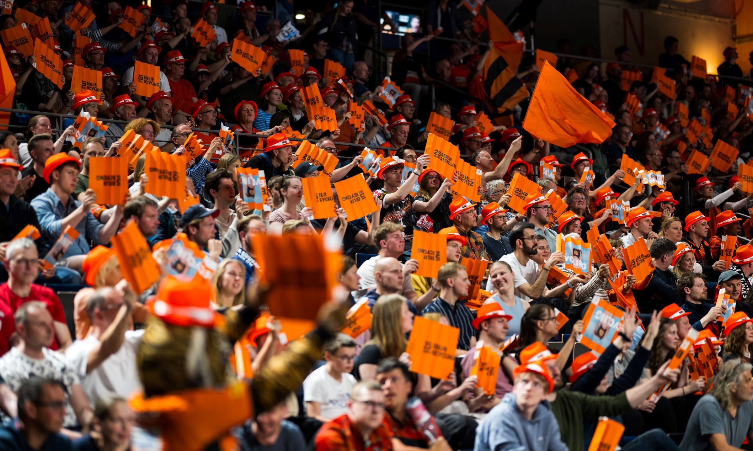 Für den Finalanlass hatte sich das „Geburtstagskind“ einiges einfallen lassen: Bereits beim Einlass wurden 2.500 orangefarbene Fanhüte an die Zuschauerinnen und Zuschauer verteilt, welche die Arena in den Vereins- und Unternehmensfarben erstrahlen ließen. In der zweiten Satzpause fanden die Feierlichkeiten ihren Höhepunkt: Zunächst heizte das Berlin Dance Team mit einer energiegeladenen Showeinlage die Stimmung weiter an – musikalisch ganz im Zeichen des Geburtstages – und anschließend wurden die Mitarbeitenden von Berlin Recycling selbst Teil der Feierlichkeiten: Sie verteilten gemeinsam mit dem früheren BR Volleys-Star Benjamin Patch Upcycling-Turnbeutel aus dem ehemaligen Riesentrikot der BR Volleys, exklusive Saisonsocken und Volleybälle als Geschenke an die Fans.